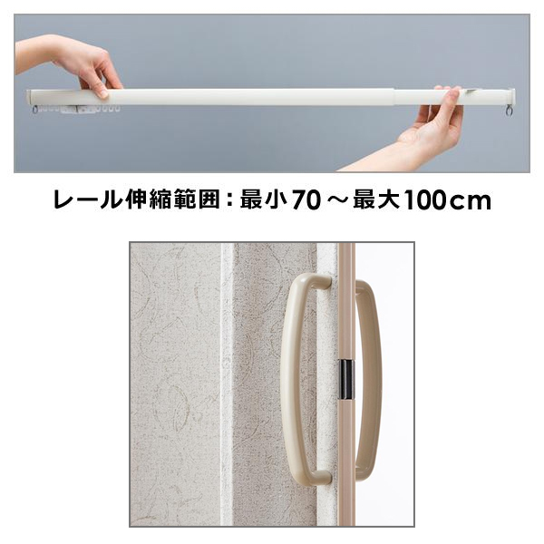 ・強力に突っ張って取り付けるため、取付面の下地がしっかりしている所(柱等が通っている所)をご確認下さい。