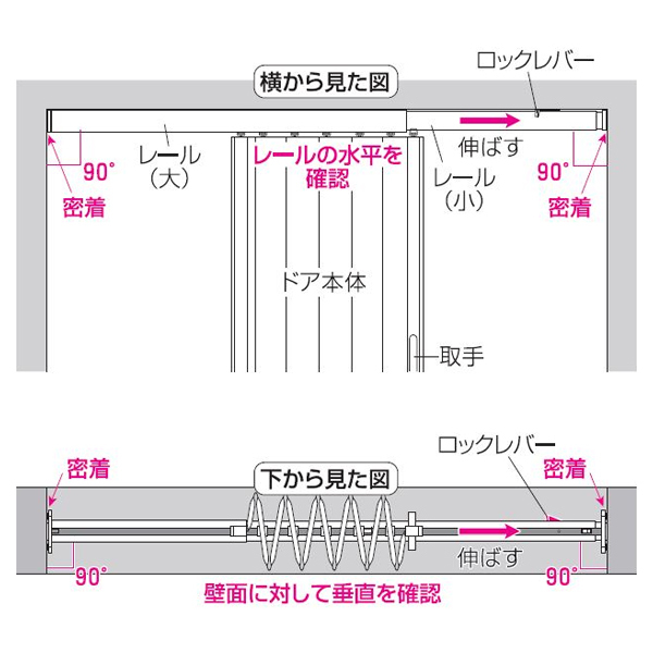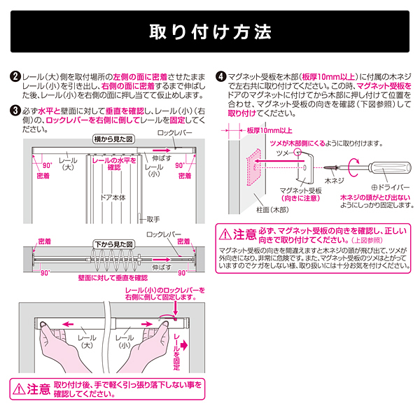 ・取り付け2~3日後、レールの突っ張り状態を再確認し、弱い時は再度取り付けを行って下さい。