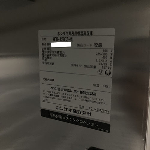 【業界最長1年保証】縦型恒温高湿庫 ホシザキ HCR-120CZ-ML 業務用 中古/送料無料