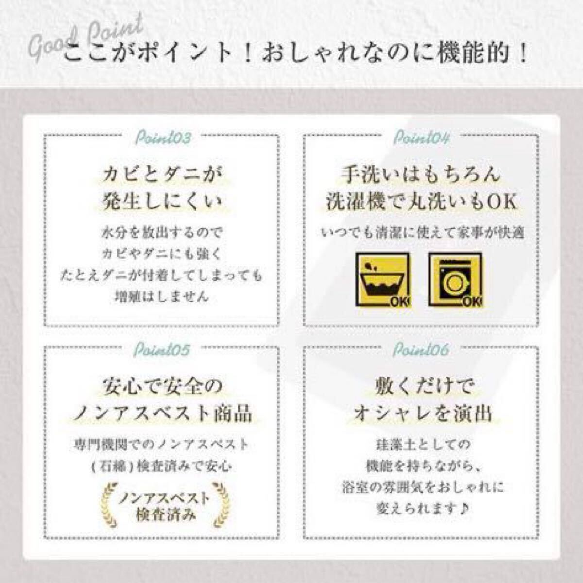 脱臭・消臭するという特性があり、バスマットに最適な素材です。