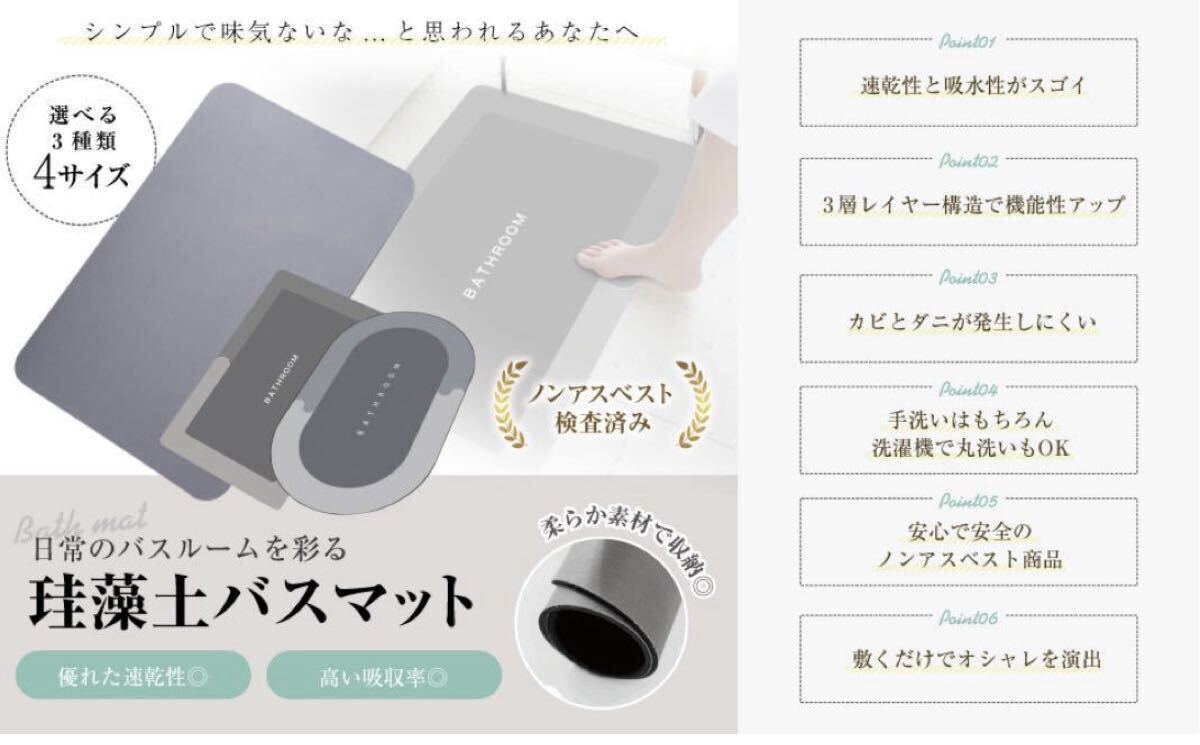 珪藻土バスマット 浴室マット 人気 足乾バスマット 珪藻土 珪酸系骨材 無機質繊維 アスベスト 無添加 吸水性 速乾 薄型 足ふきマット 清潔 (オーバルタイプSSサイズ)