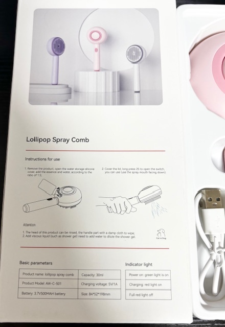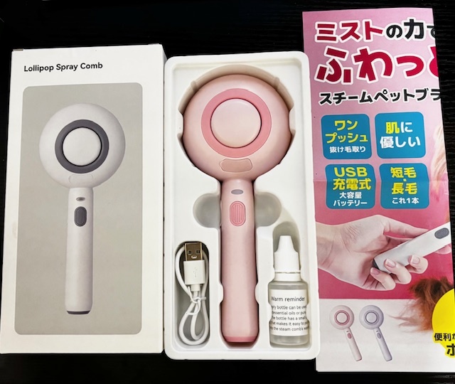 lollipop spray comb スチームペットブラシ ミスト USB充電式 スチーム機能 犬 スチームブラシ ピンク Animary ロリポップ