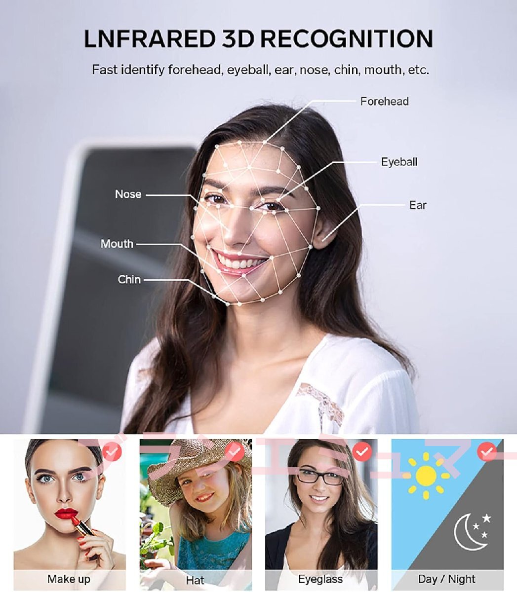 顔認識技術:設定で顔を収集するだけで、メガネを使用していても、ロックで特徴のコピーを安全にキャプチャできます。全自動3D顔認識、赤外線高速スキャンロック解除。高速で正確な識別のための赤外線スキャン。すべての偽物、写真、ビデオ、3Dモデルを拒否します。