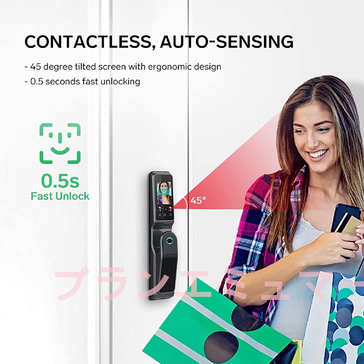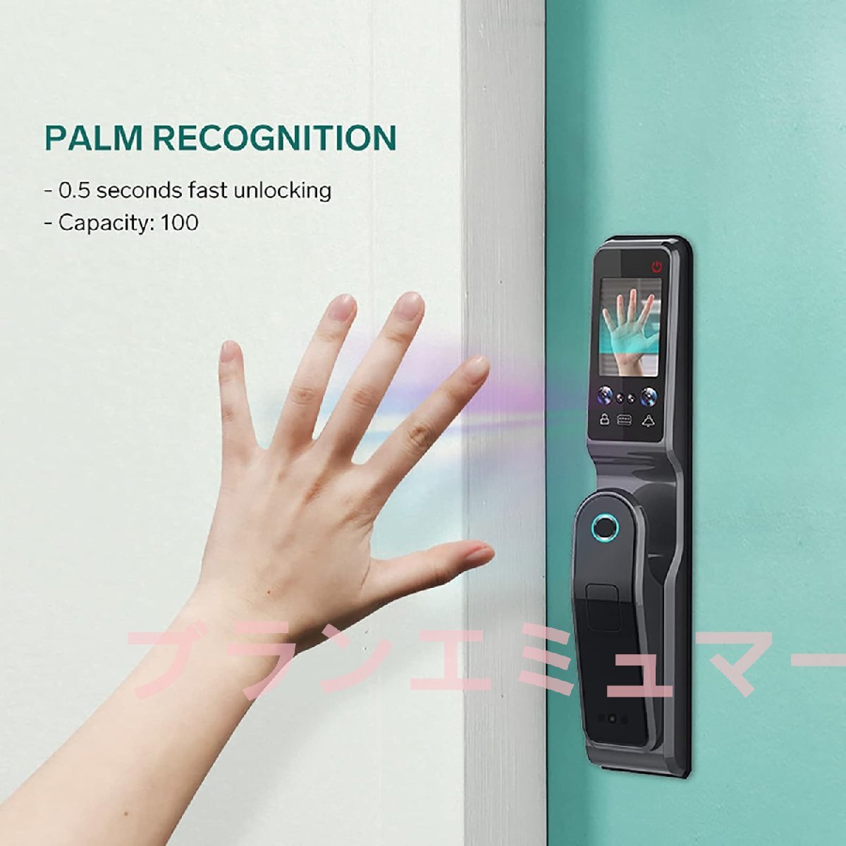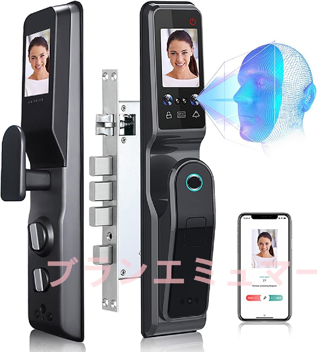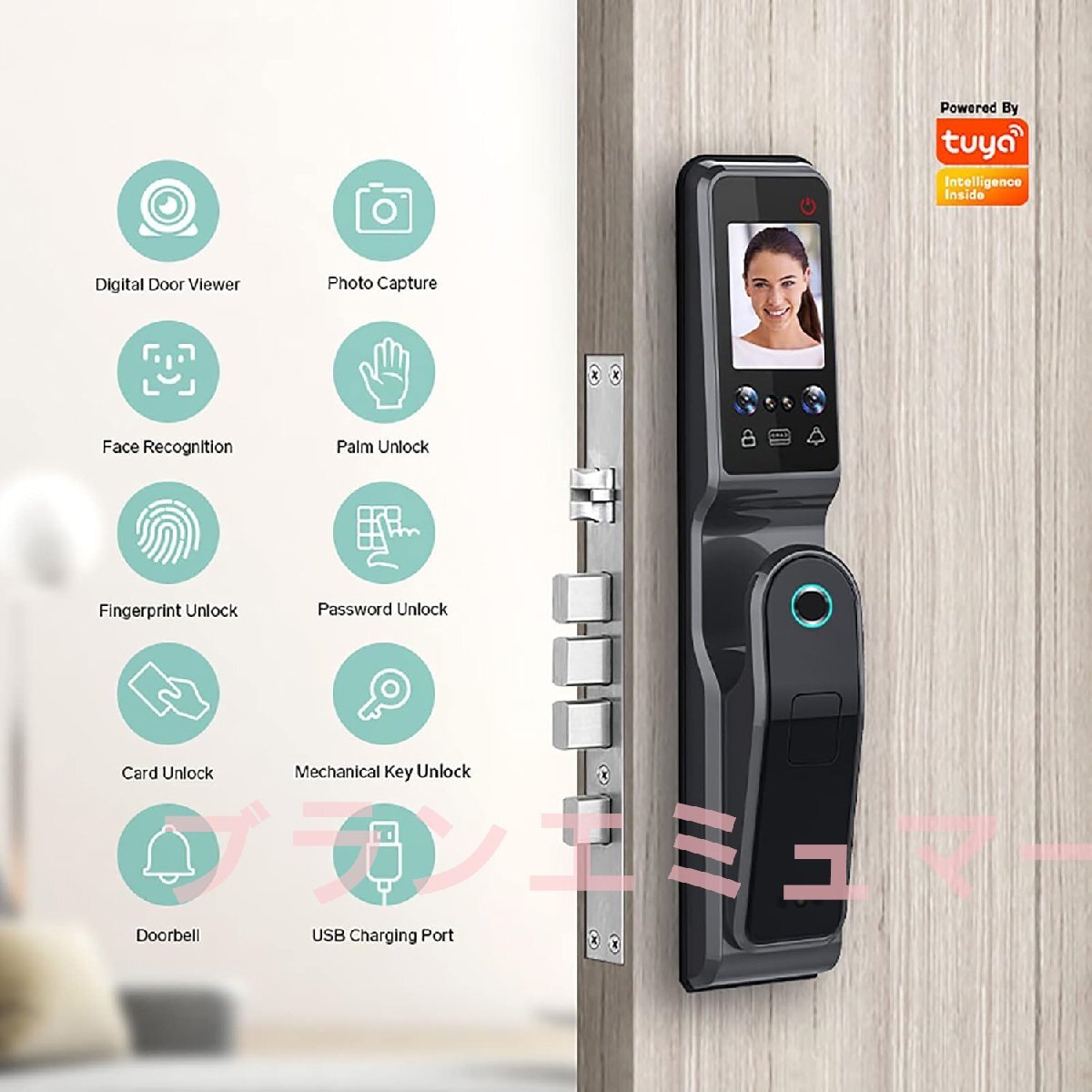 スマートドアロック、顔認識生体認証指紋デジタルパスワードカードホームエントリードア用のキー付き、可視ドアビューア付きスマートドアロ