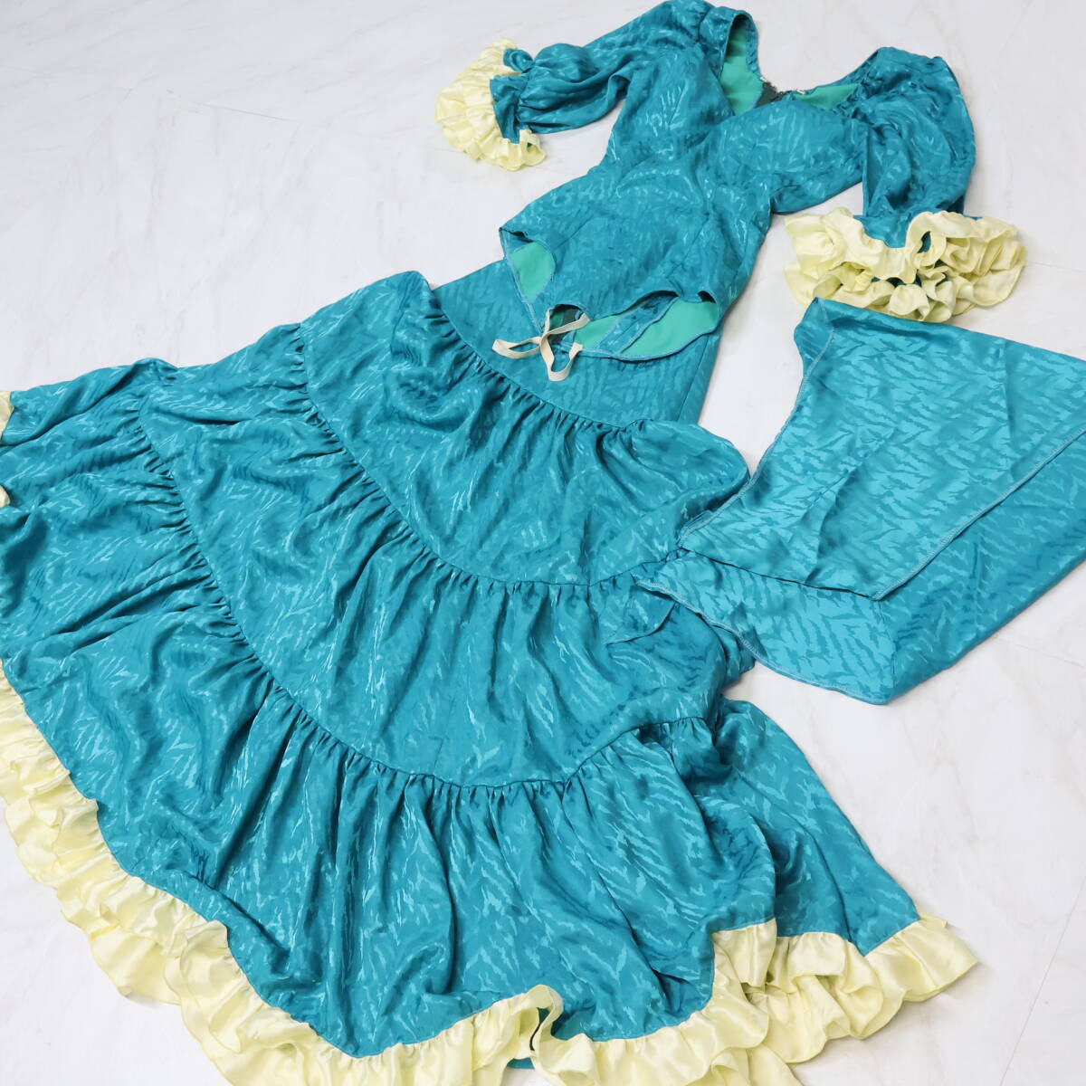 商品説明 | 【詳細】 商品名:フラメンコ衣装 上下セット ツーピース セットアップ ※内訳 トップス:背面ファスナー仕様 サイズ表記無し 平置き実測:総丈約63cm(裾~肩部まで) 肩幅約25cm 身幅約36cm ウエスト約30cm(伸縮性御座いません) ファルダ:背面ファスナー仕様 サイズ表記無し 平置き実測:ウエスト約30cm 総丈約100cm (伸縮性御座いません) ※実測の為、多少の誤差はご容赦願います ※画像9の色味が一番近いです ・MAKIS COSTUMES マキコスチューム ・ブルーグリーン系の濃い色味 ・大きく広がるファルダとアイボリーのボランテがお洒落 ・ボリュームのある袖口がかわいらしいデザイン 【撮影時使用トルソー:女性用トルソー7号(少し細めのサイズです)】 ■トルソーサイズ詳細 肩幅:約37cm バスト:約83cm ウエスト:約60cm ヒップ:約81cm |