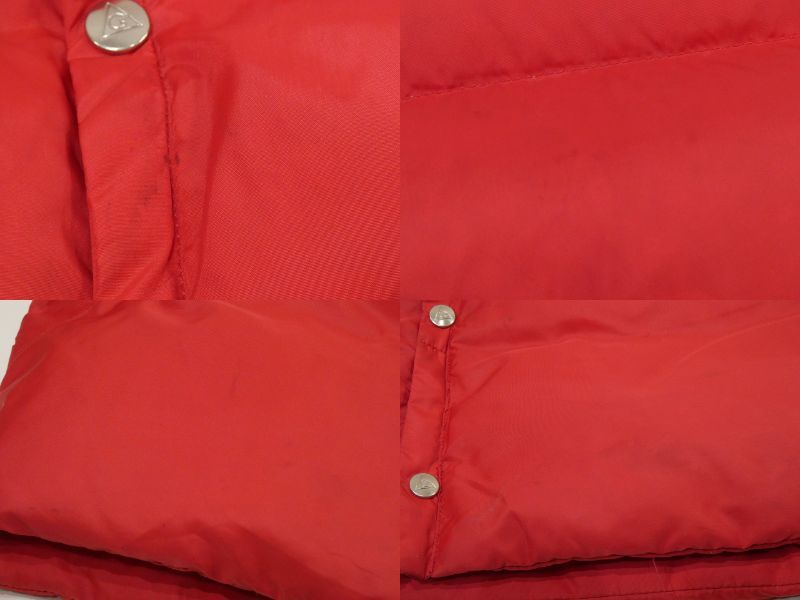 | こちらは、70年代頃のジェリー ダウン ベストになります。 GERRYは1946年にジェリー マウンテニアリング カンパニーとして創業し、1953年には人類史上初エベレスト登頂したエドモンド ヒラリー卿を始め、多くの登山隊に本格的なクライミングギアを提供してきた歴史のあるブランドです。そんなこちらは、70年代の旧タグモデルで、オールドアウトドア物らしいレッドナイロン地に、フィリングにはグースダウンが入っています。本格的なアウトドア物は保温性も別格です。なかなかこの時代の大きいサイズは出て来ませんので、お探しだった方は是非、ご検討下さい。 ※画像のシャツはお付けいたしません。 コンディションは多少の使用感があり、腹部や背中などに所々薄シミや少しヨゴレが見られますが、オールドアウトドア物としては良い方だと思います。 素材 NYLON×DOWN SIZE LARGE 肩幅49cm 身幅65cm 着丈70cm 素人採寸の為、多少の誤差はご了承ください。 | |||
