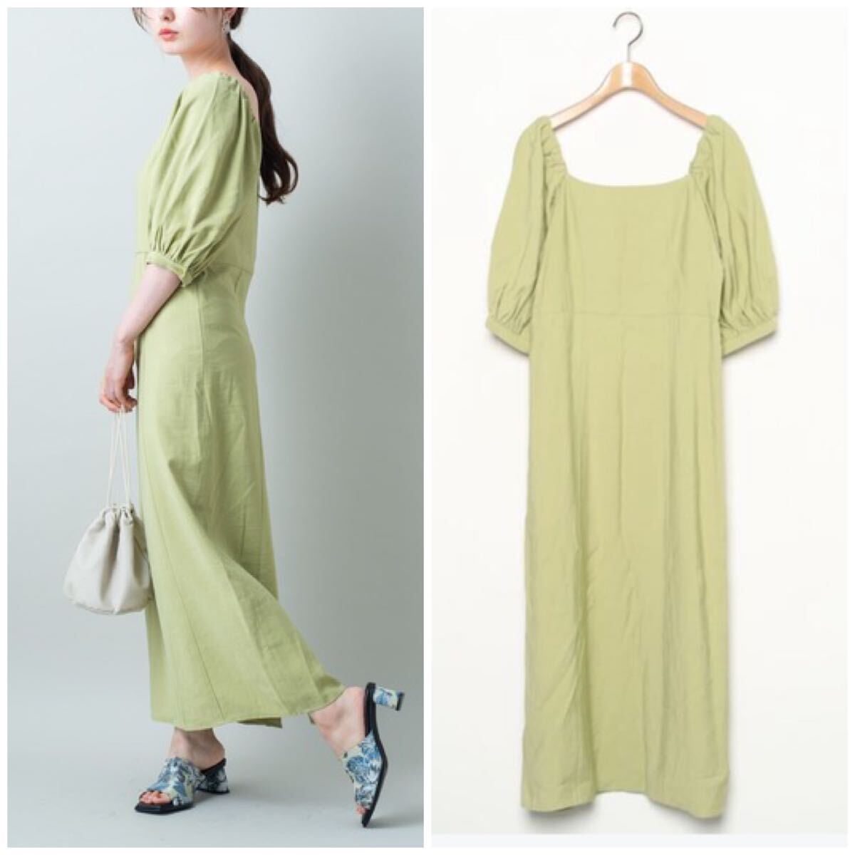 女性らしいシルエットのスクエアワンピース。デザインボリューム袖とスクエアネックが女性らしい、デザインです。伸縮性のある素材で、夏の時期も着易いサラッとした素材感。前後スクエアネックのデザインは背中とデコルテラインを綺麗に魅せてくれ、程よい肌見せが叶います。袖は5部袖。