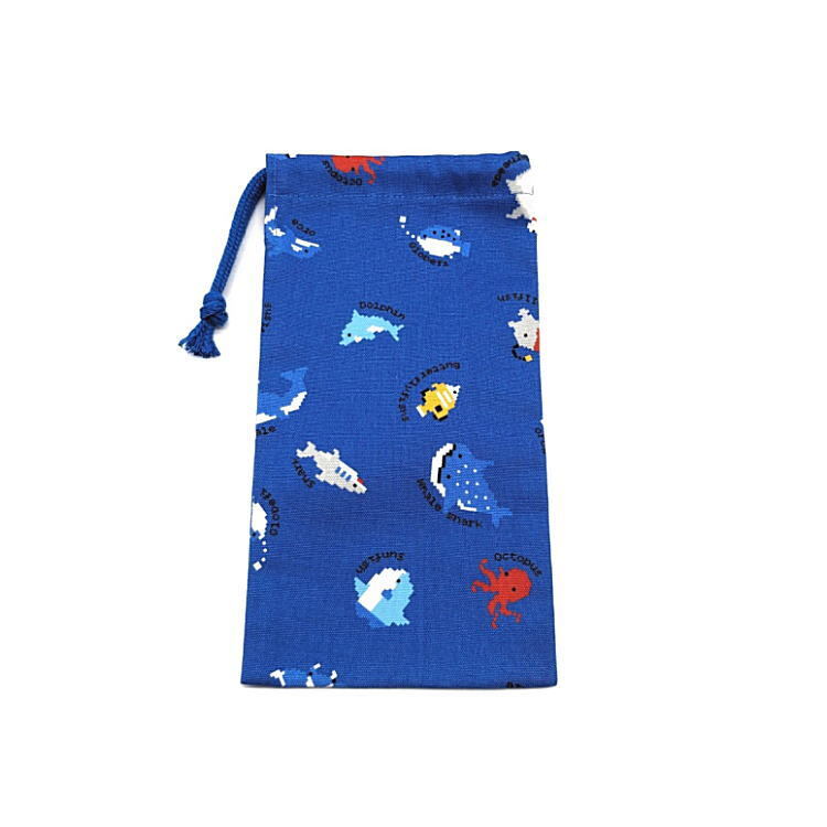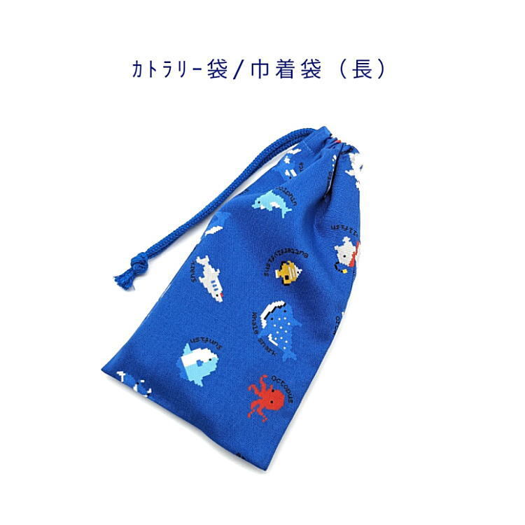 カトラリー袋・巾着袋 長方形【ドット絵 海の魚柄 ブルー】カトラリーケース コップ袋 ポーチ サカナ ピクセルアート ブロック絵 水族館