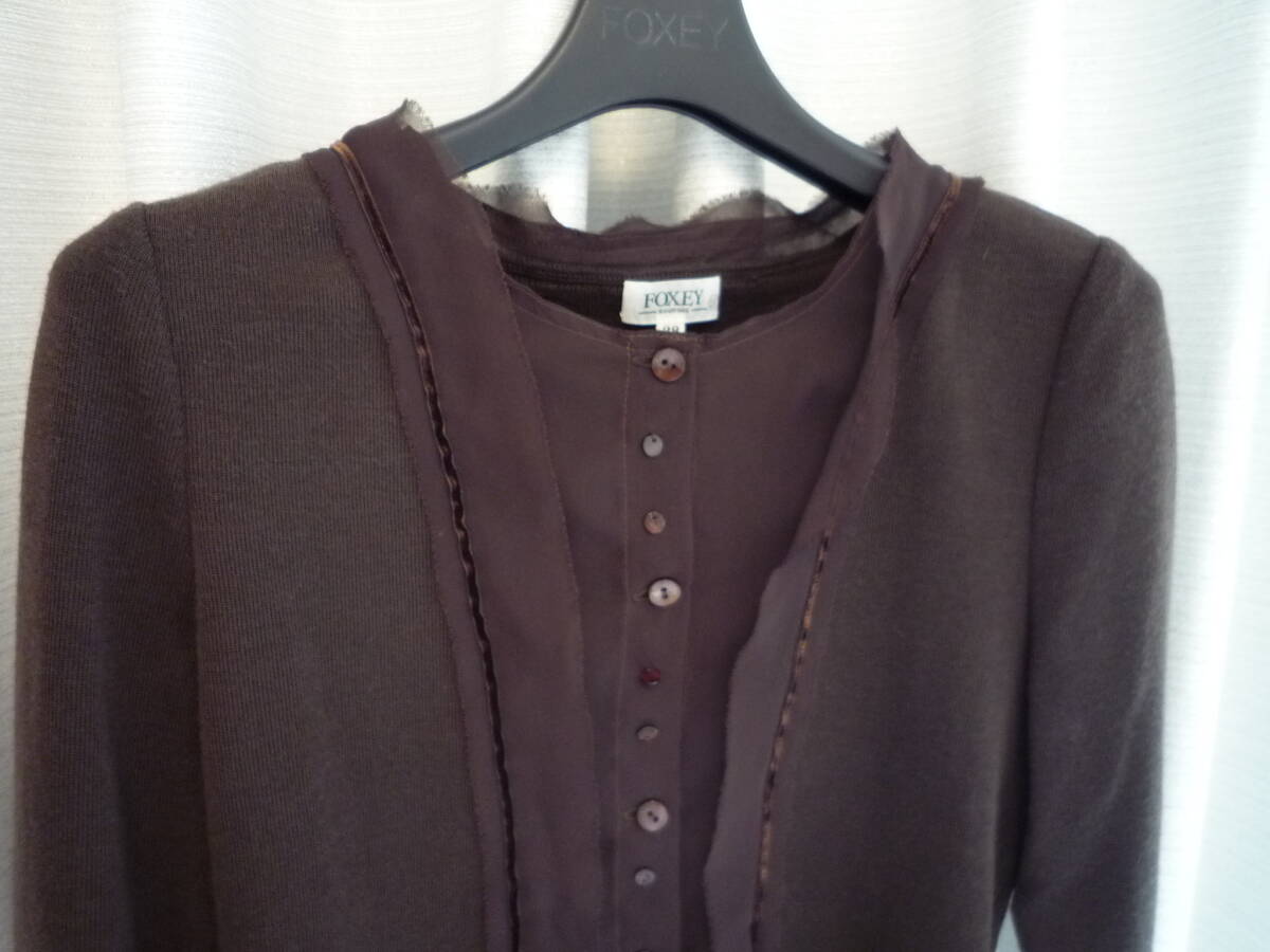 未使用 美品 フォクシー トップス カーディガン シアー シースルー カットソー ニット ブラウン 38 ボレロ