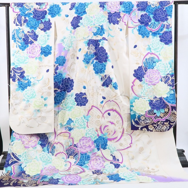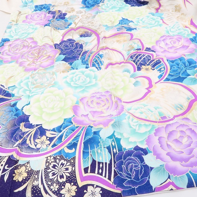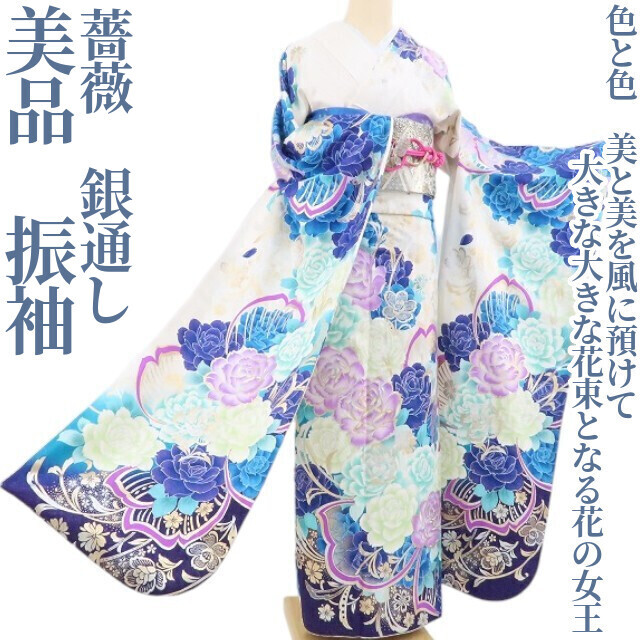tomihisa 美品 薔薇 銀通し 着物 成人式 正絹“色と色、美と美を風に預けて大きな大きな花束となる花の女王”振袖 4920