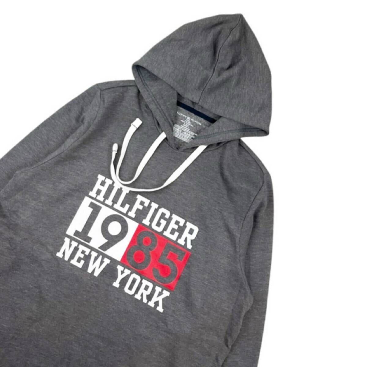 トミーヒルフィガー パーカー 薄手 ロンT 長袖 09T4457 スウェット グレー Sサイズ フーディ プリントロゴ TOMMY HILFIGER 新品
