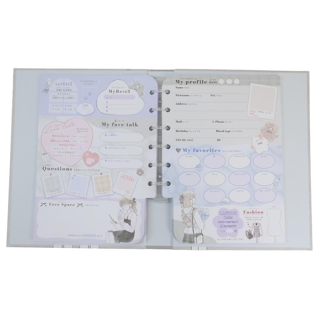新学期には欠かせない!!友達いっぱい作っちゃお 新学期の準備にぴったりのステーショナリーこちらは新学期には欠かせない とっても可愛いプロフィール帳ハードカバータイプのバインダー式だからみんなに書いて貰った後しっかり保管OK。いろんなデザインあるからお気に入り見つけてねサイズ:約145x190x25mm[セット内容]中紙40枚/よせがき台紙1枚/シール付き