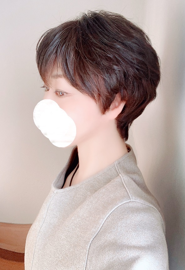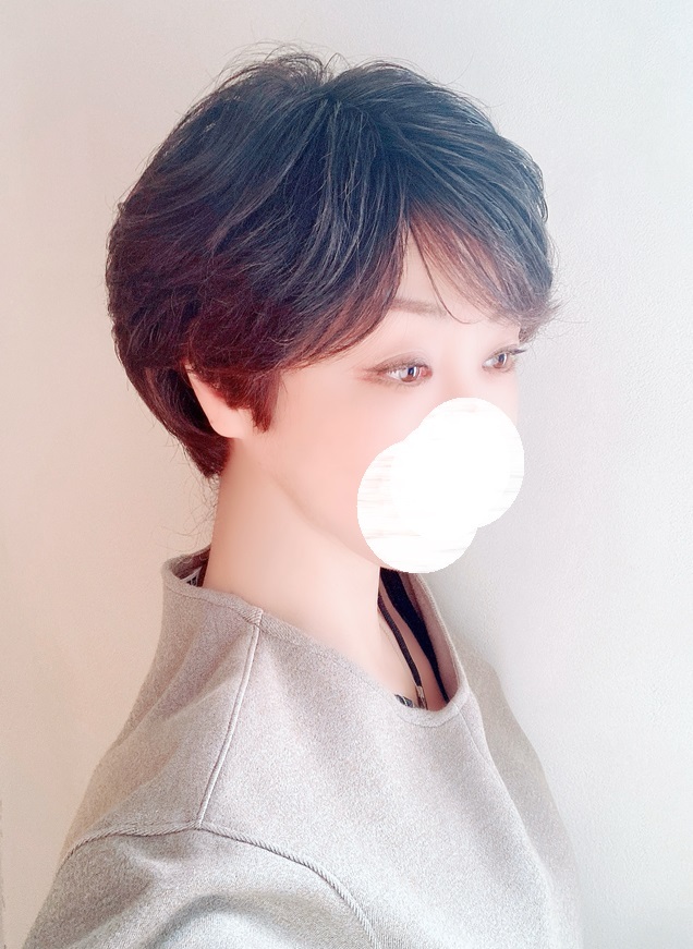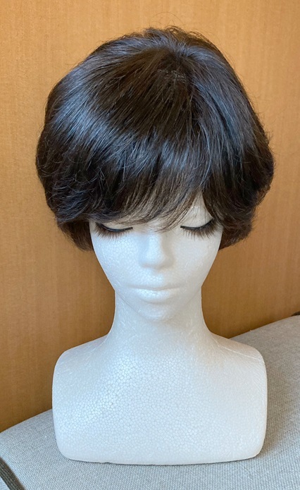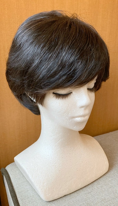 ウィッグキャップ(ベースネット)を縫い縮めてあります。 毛先がカールしたショートスタイルです。
