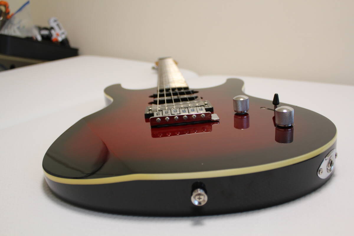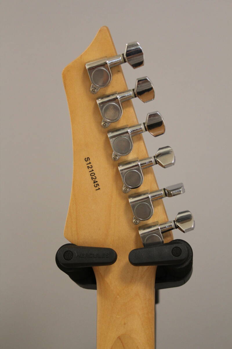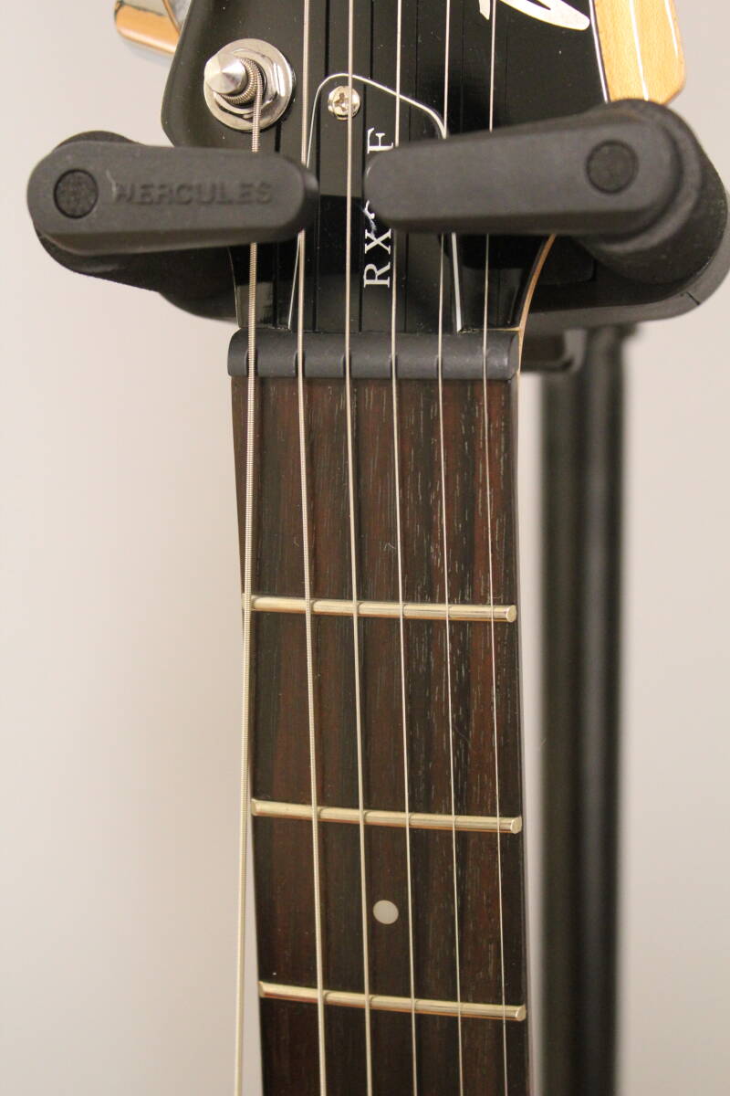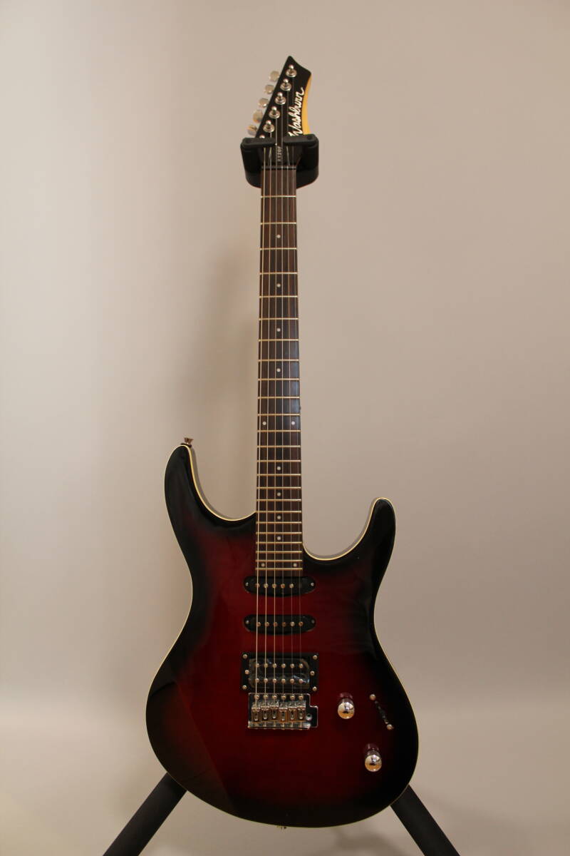 | Washburn Guitarsはヌーノ・ベッテンコート(エクストリーム)、ポール・スタンレー(キッス)等が愛用していることで知られるアメリカのギターブランドです。 ボディはフレイムメイプル でワインレッドバーストの美しい仕上げにです。傷、打痕、凹み、剥げがありますが目立つものはなく綺麗です。 ネックはメイプル 材とローズウッド指板の24フレットでヒールカットジョイントのボルトオンでハイフレットも弾き易くなっています。 ―商品説明― 【ブランド】 :Washburn 【品番】 :RX20F 【定価】 : 【ボディ】 :Flame Maple Top 【ネック】 :メイプル 【指板】 :ローズウッド 【スケール】:648㎜ ロングスケール 【PU】 :SSH配列 【CONTROL】 :1ボリューム、1トーン、5WAYスイッチ 【重量】 :3.375kg ―商品状態― 状態 :A 買って数回弾いてそのまま仕舞ってあったレベルの綺麗なコンディション ロッド残 :十分 フレット :ほとんど使用されていません。 ネック :演奏上の問題はありません。 ボディ :キズ、弾きキズがありますが小傷レベルできれいです。 電装系 :音出し確認済み。特に問題なし。 09-42エクストラライトが張ってあり、ネックはストレートです。 12Fの弦高は6弦2mm、1弦1.5mmで09-42で調整してあります。 セットアップ(クリーニング済、ロッド調整・オクターブ調整・弦高調整・PU高さ調整)済み、フレット山は演奏に問題ない高さがあり、トラスロッドは締める方向・緩める方向調整可能で±60°まで動作確認済みです。すぐに即戦力としてお使いいただけます。 | |||