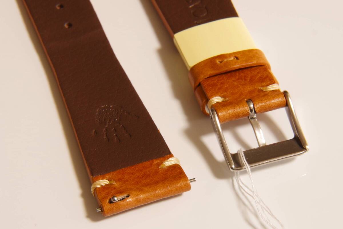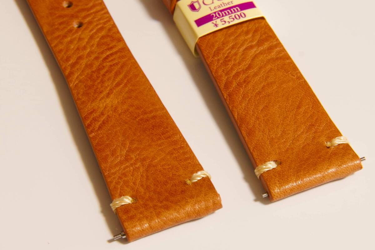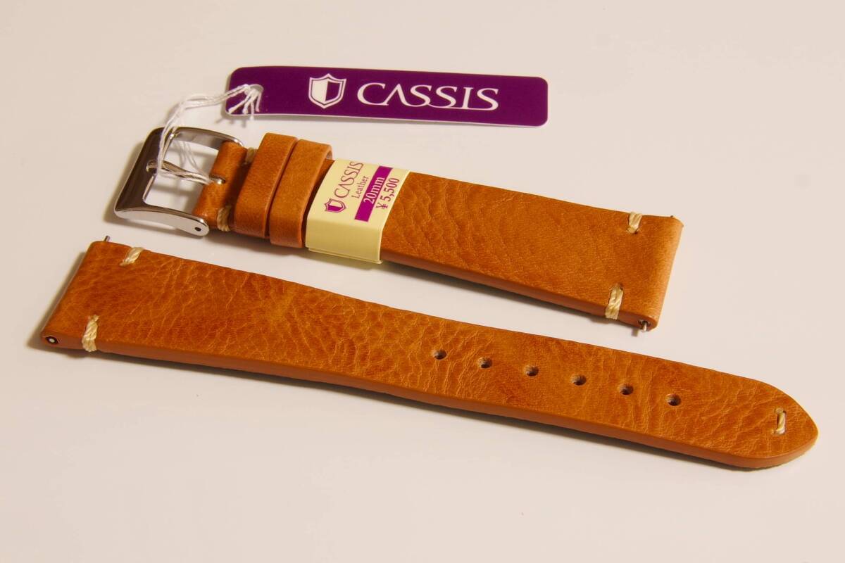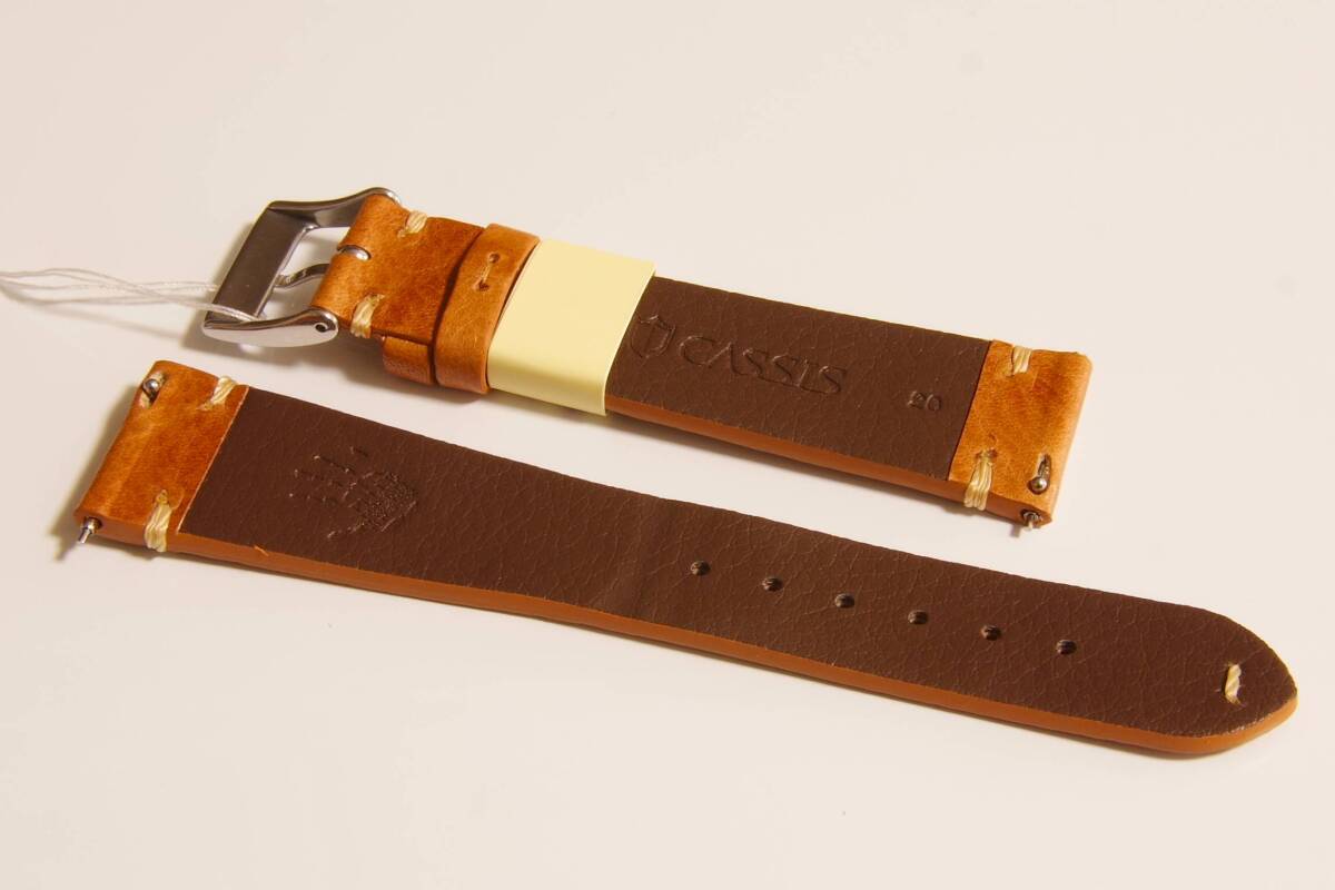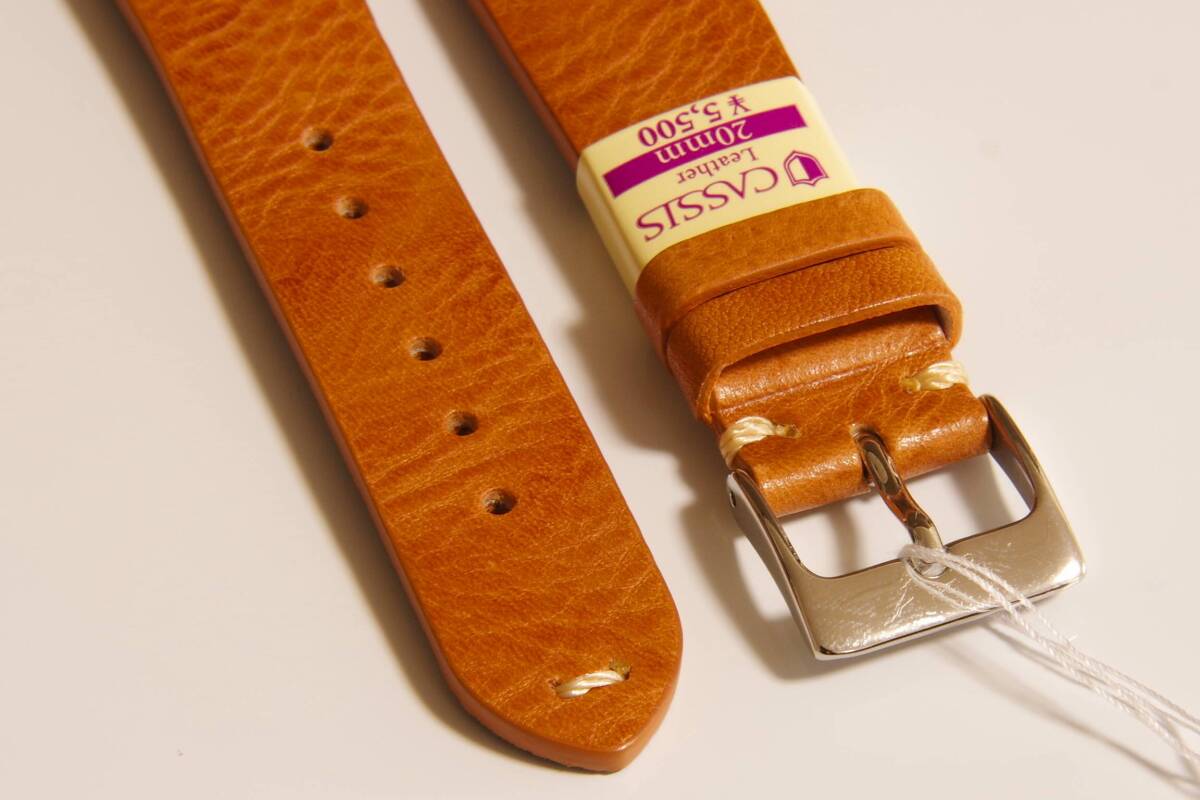 ヴィンテージ感のあるカーフを使用したモデル。 色むら等がよりヴィンテージ感を醸し出しています。 付け根にかがり縫いと剣先のステッチがアクセントになっています。 裏材には水・汗に強い合成皮革「LORICA(ロリカ)」を使用しております。 商品の詳細 商品名CASSIS GRENOBLE(グルノーブル) Tan(046) 希望小売価格\5,500(税込) 材質カーフ皮革 金色/ステンレス尾錠(ご希望色にて) サイズ ラグ幅 20mm 尾錠幅 16mm 長さは剣先側 115mm 尾錠側 75mm(尾錠含まず) 厚み約3mm カシスDバックル装着は可能です。 重量10g 発送の詳細 匿名配送のネコポスでお送りいたします。 |