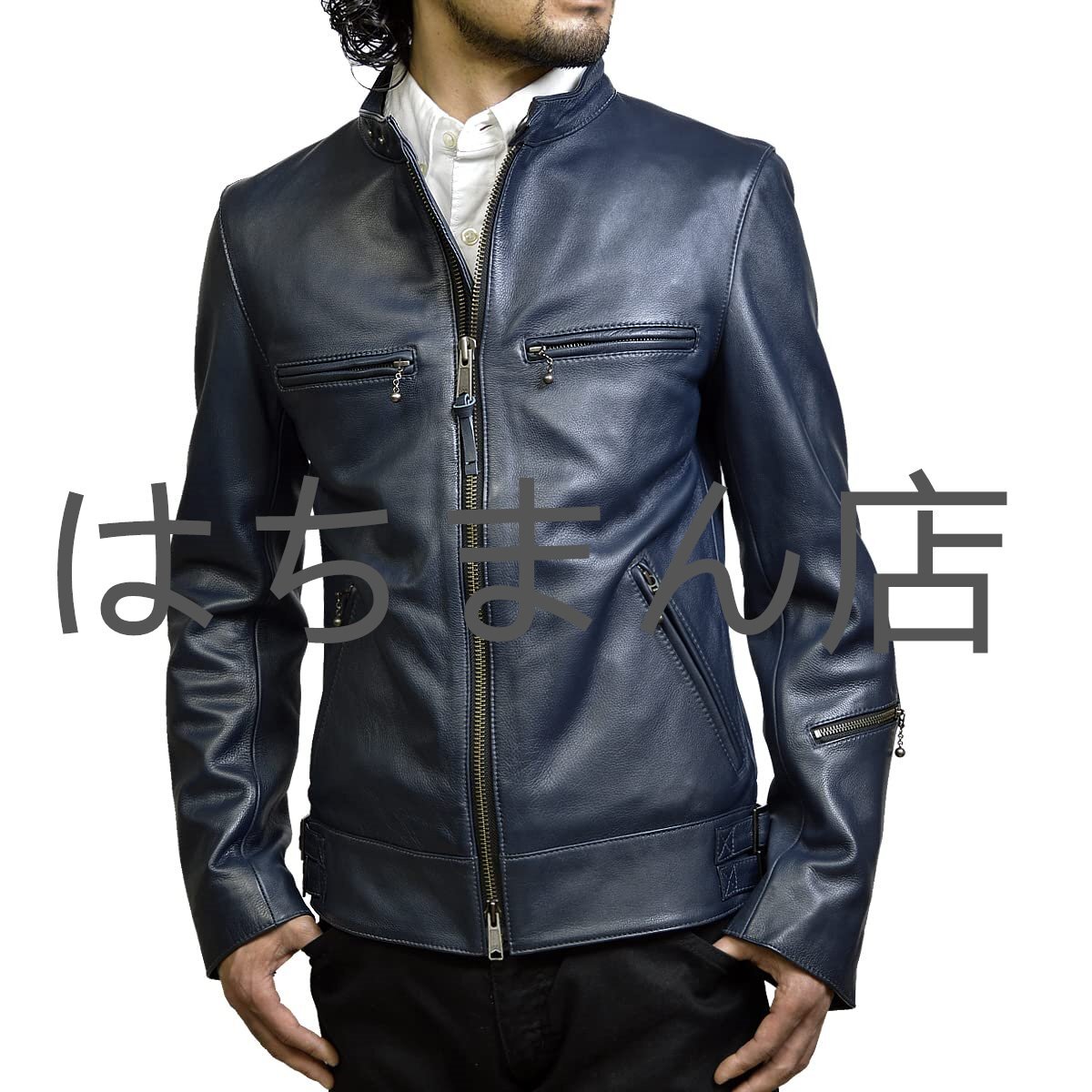 革ジャン ライダースジャケット メンズ 本革 レザージャケット ライダース シングルライダース 大きいサイズ 秋冬 ネイビー S-3XL