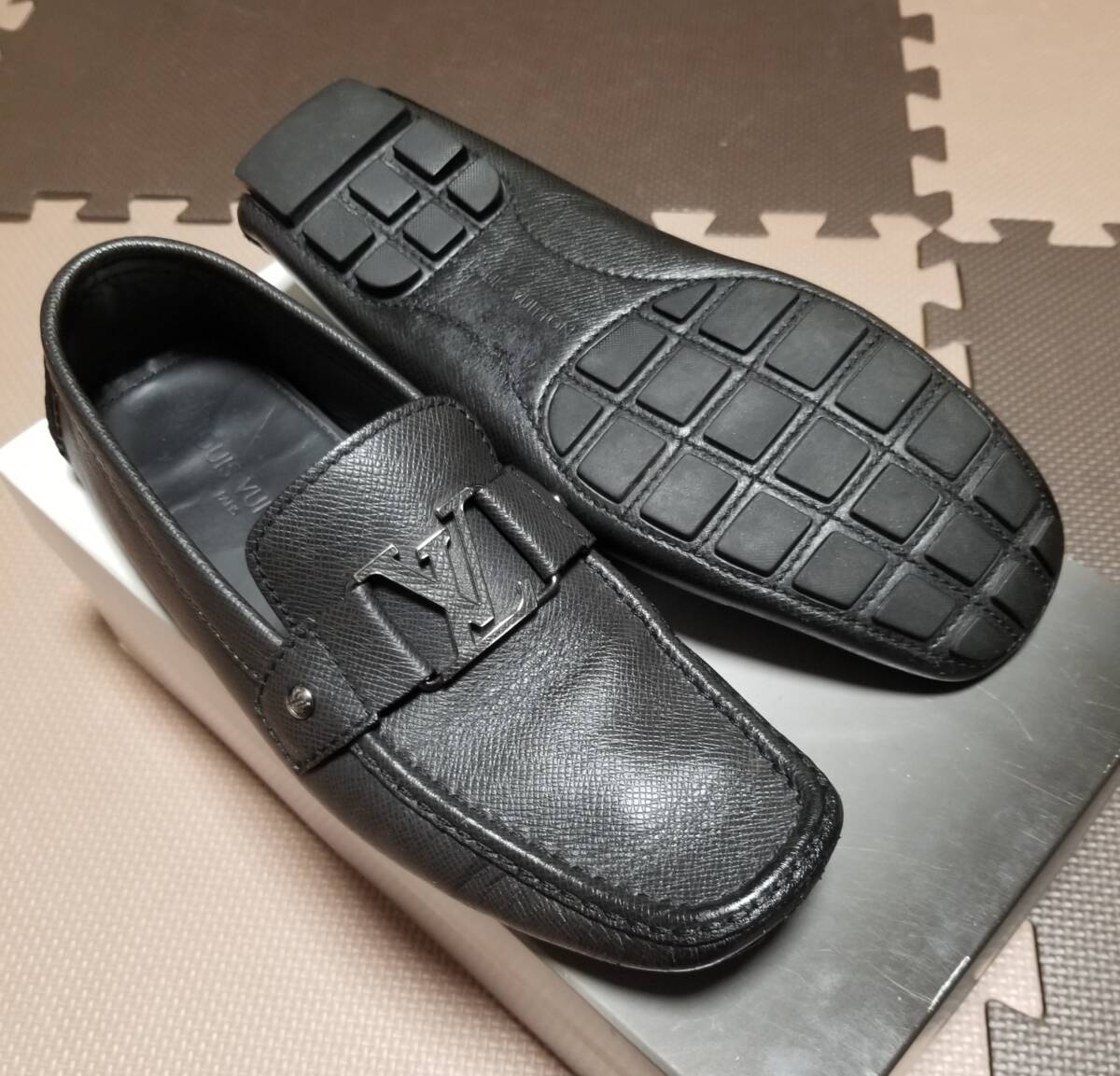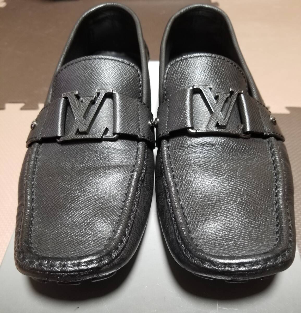 LOUIS VUITTON ルイヴィトン モンテカルロ ドライビングシューズ スリッポン 黒 ブラック タイガ サイズ8.5 27.0cm 美品