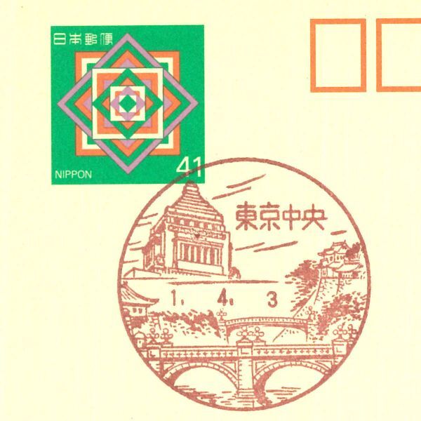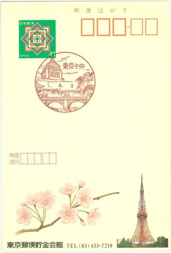 エコー☆東京郵便貯金会館☆風景印・東京中央・H1.4.3