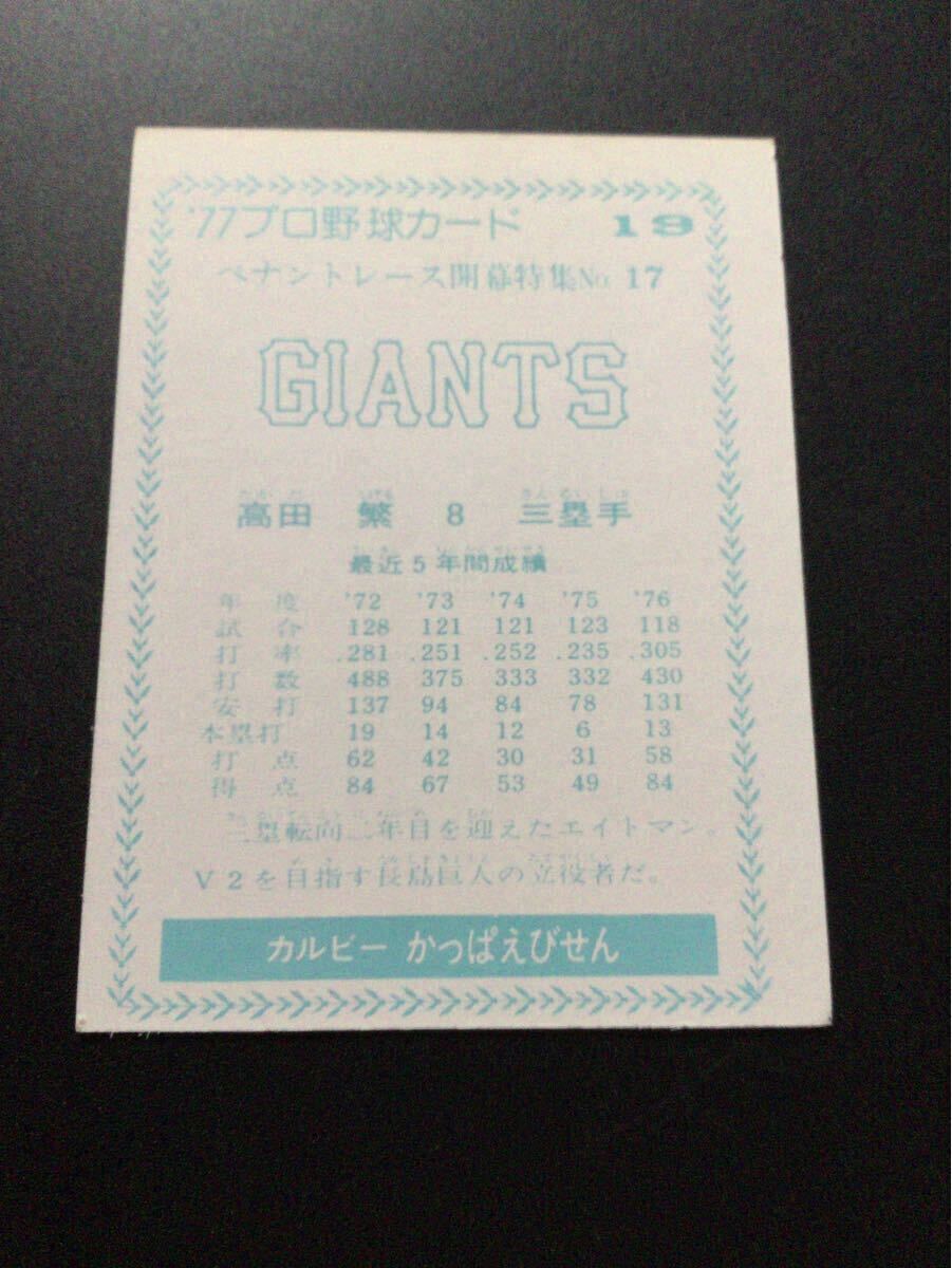 カルビー プロ野球カード 77年 青版 No19 高田繁