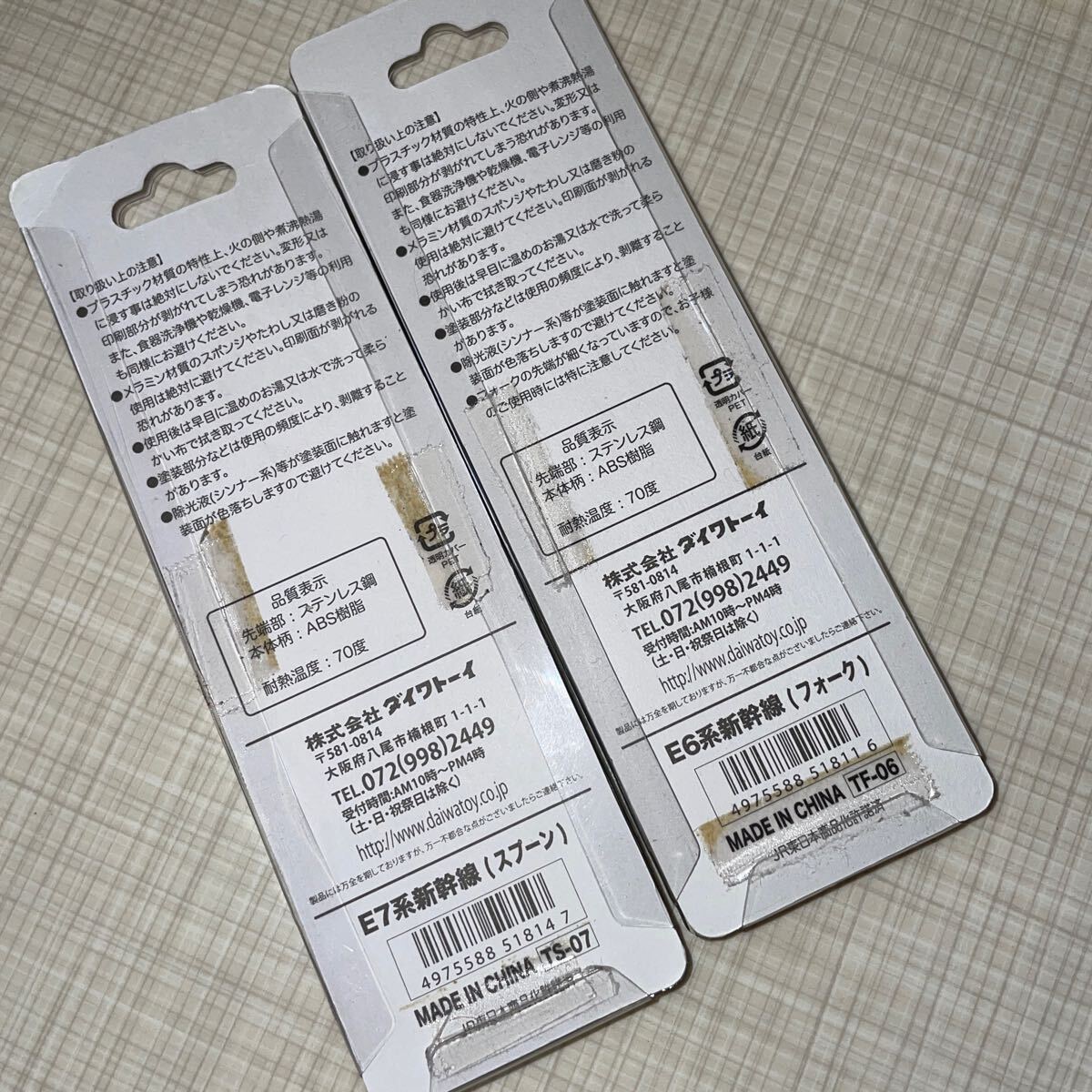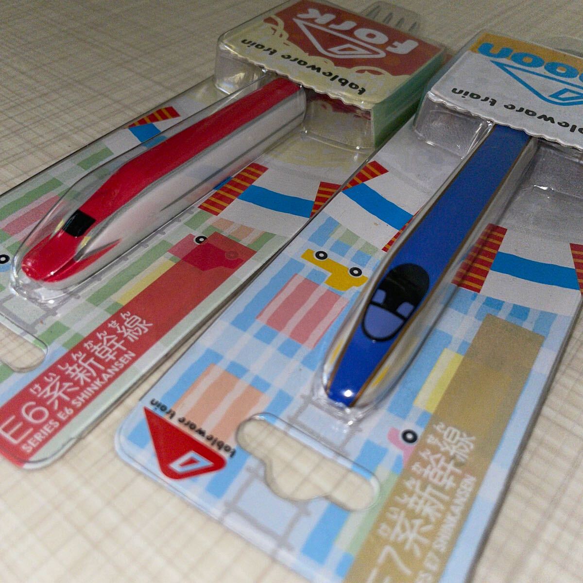 E7系新幹線のスプーンとE6系新幹線のフォークセットになります。