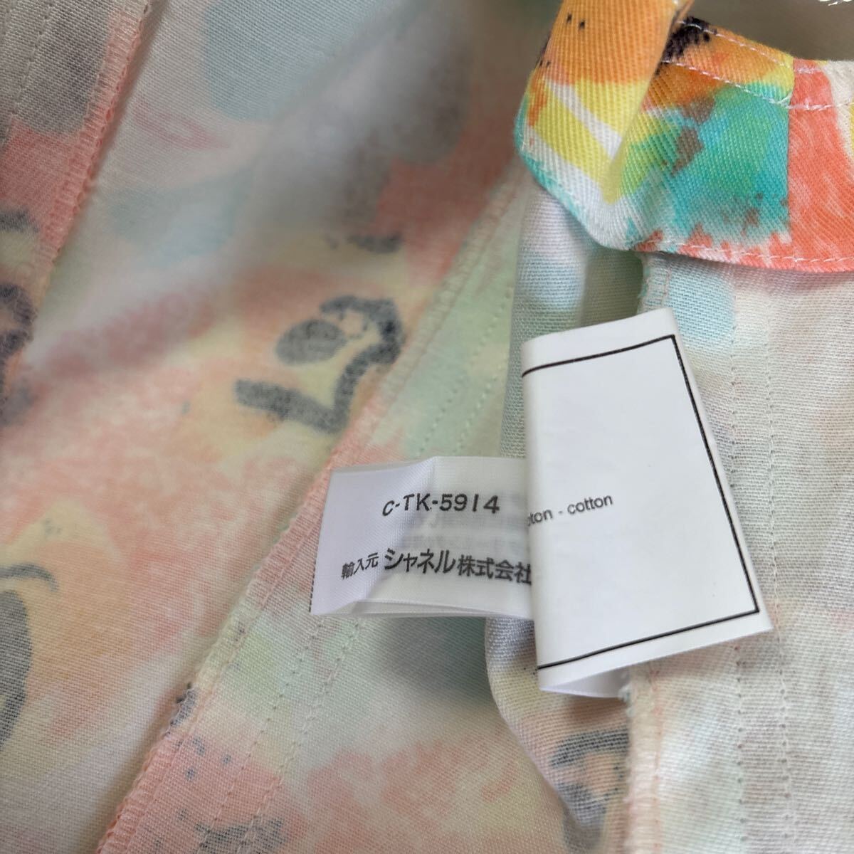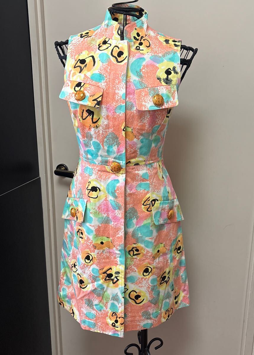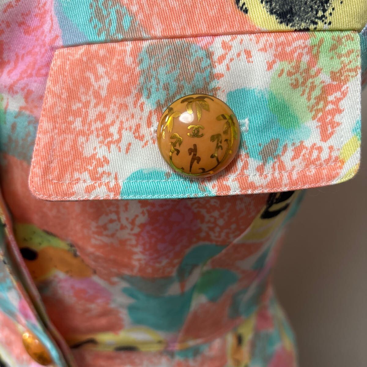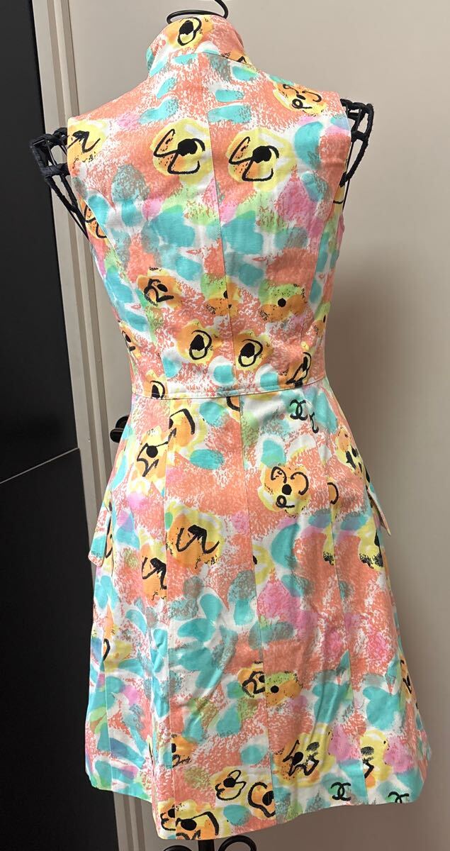 商品名 : シャネル 花柄ワンピース 椰子の木柄のシャネルのボタン