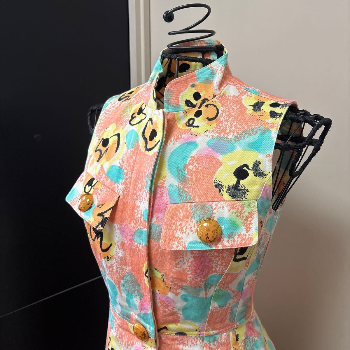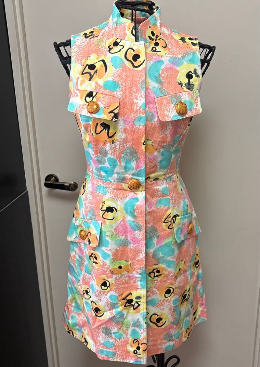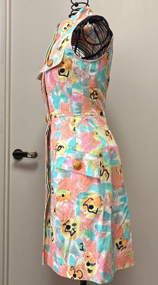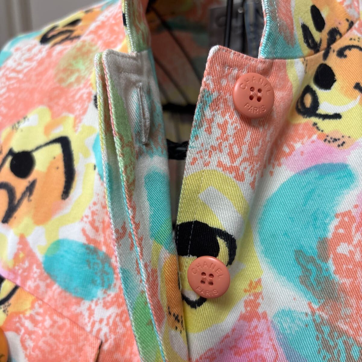 商品名 : シャネル 花柄ワンピース 椰子の木柄のシャネルのボタン
