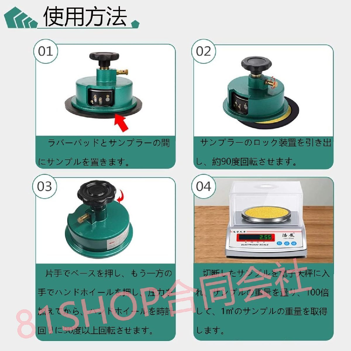 計算:切断したサンプルの重量に100を掛けて、平方メートルあたりの重量を簡単に計算します。
