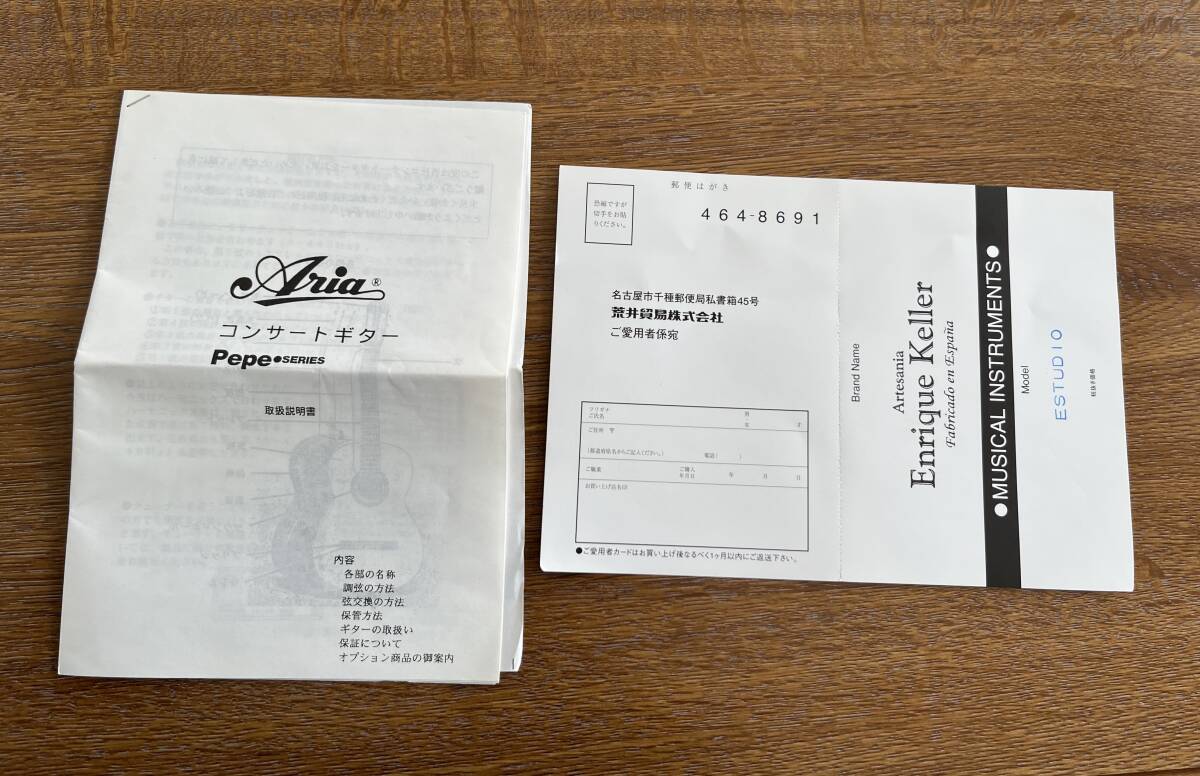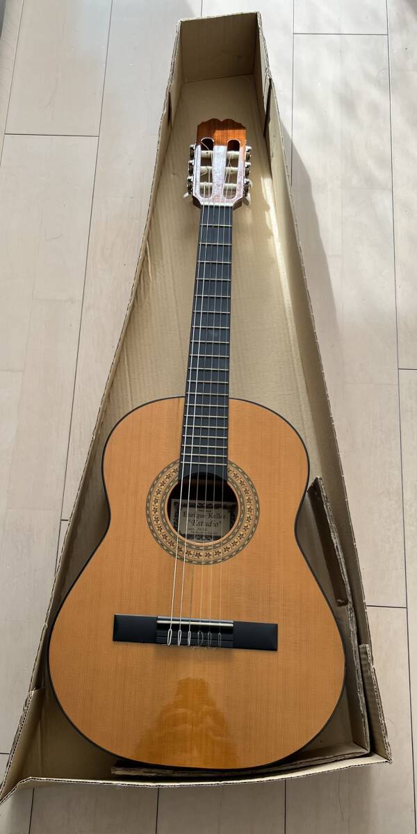 【商品内容】 ミニクラッシックギター Enrique Keller(エンリケ・ケラー 「エストゥーディオ」モデルです。クラシックギターの本場スペインで製造され、一般向けの低価格ながら高いクオリティで人気の高いEnrique Keller 製のクラシックギター、モデル「エストゥーディオ」です。 「Enrique Keller(エンリケ・ケラー)」社は1944年創業で、クラシックギターの本場スペインの北部バスク地方サラウツで製造を続けている伝統のメーカーです。Aria コンサートギター Pepeシリーズとして荒井貿易から国内で販売されました。 使用せず長期自宅保管しておりましたので弦は少し劣化しております。 【サイズ】 約90㎝ This is the mini classical guitar Enrique Keller "Studio" model. ※詳細は写真をご覧いただき宜しくお願い致します。 ※送料はゆうパック(170サイズ)で、出来るだけ安価となるよう梱包しお知らせいたします。