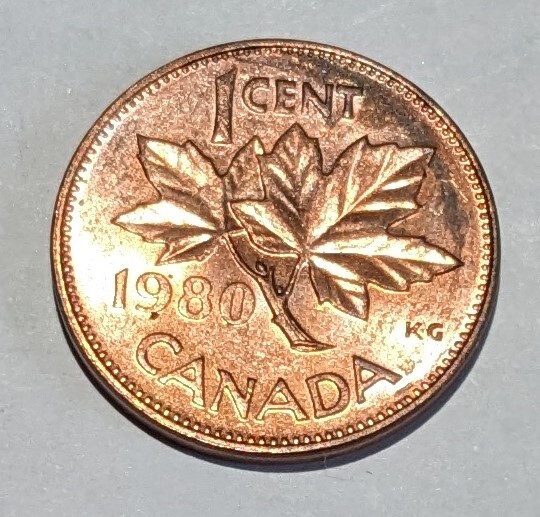 '1980 カナダ 1セント銅貨 メイプルリーフ 流通品 HJ029