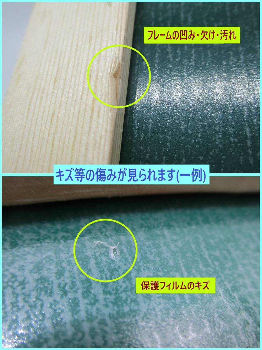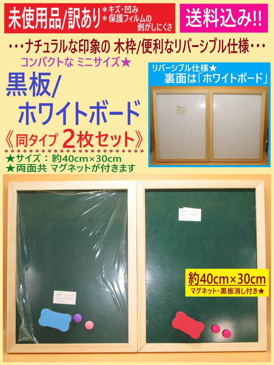 | 「訳あり」扱いの 未使用品です。 専用のパッケージ等の外装は、ありません。 片面は「黒板」、もう片面は「ホワイトボード」 リバーシブルタイプのお品 2枚セット商品です。 大きさは 手頃なサイズ感の 約40cm×30cm。 両面とも マグネットがくっつくので ちょっとした「お知らせ」や掲示に便利なお品です。 それぞれに 小さな「マグネット2個」と 「黒板消し1個」を お付けします。 木枠・板面の保護シートに キズや欠けが見られます。 また、保護シートが剥がしづらい様子で、 ゆっくり優しく剥がしていただかないと 板面の「コーティング」が剥がれてしまう 場合があるようです。 他、2枚のうちの1枚は、 保護シートに広範囲の剥がれが見られます。 その為「訳あり」として 安価にて出品いたします。 以下の商品説明をよくご覧になってから、 ご検討をお願い致します。 神経質な方、完品をご希望の方は、 御入札をご遠慮ください。 【商品内容】 リバーシブルタイプ 黒板/ホワイトボード 同タイプ 2枚セット 《基本的な仕様》 *個々のお品で 多少の差異あり [サイズ] 木枠含めて 約 40cm×30cm (板面サイズ 約36cm×26cm) 厚さ 約 1.5cm [重量] 1枚あたり 約 600g [その他] 海外製・ノーブランド 木製の枠 「黒板」面のカラーは"グリーン" それぞれに マグネット2個・黒板消し付属 *マグネットサイズ 約 2cm径 黒板消しサイズ 約 7cm×4cm×1.6cm お届け時は 両面に「保護フィルム」が貼られていますので 剥がしてから ご使用下さい *状態などは画像にてご確認ください *実際の商品の色味とは異なる場合があります 【状態等】 ・未使用品です。 ・専用のパッケージなどの外装は、ありません。 ・海外製につき、作り・切断面の処理等に 粗さがある場合があります。 また、長期保存品につき、 汚れ・埃の付着等がある場合があります。 他、「マグネット」には、スレが見られます。 美品・完品をご希望の方は、ご遠慮下さい。 ・木枠・板面の保護シートに キズや欠けが見られます。 *保護フィルムに付いたキズが 板面に貫通している可能性があります ・板面の保護シートが剥がしづらい様子で、 ゆっくり優しく剥がしていただかないと 板面の「コーティング」が剥がれてしまう 場合があるようです。 ・付属の「黒板消し」の消え方が あまり良くないという情報があります。 ご自身でご用意いただくのも 良いかもしれません。 以上の点より「訳あり」扱いとして、 安価にて出品いたします。 ご承知をいただける方のみ、 ノークレーム・ノーリターンにて、 ご検討ください。 | ||