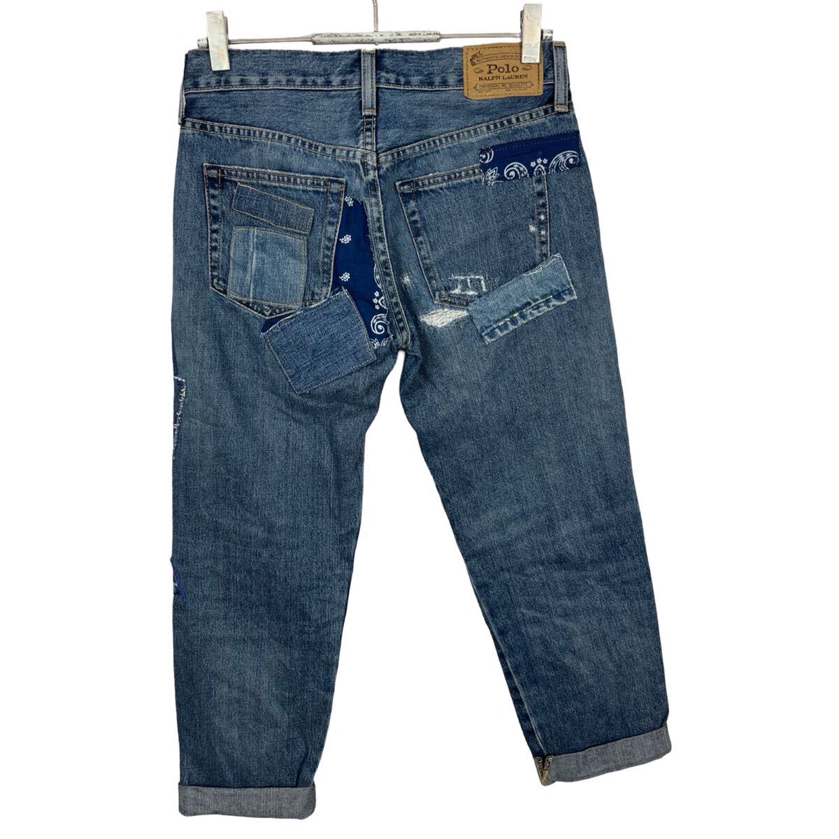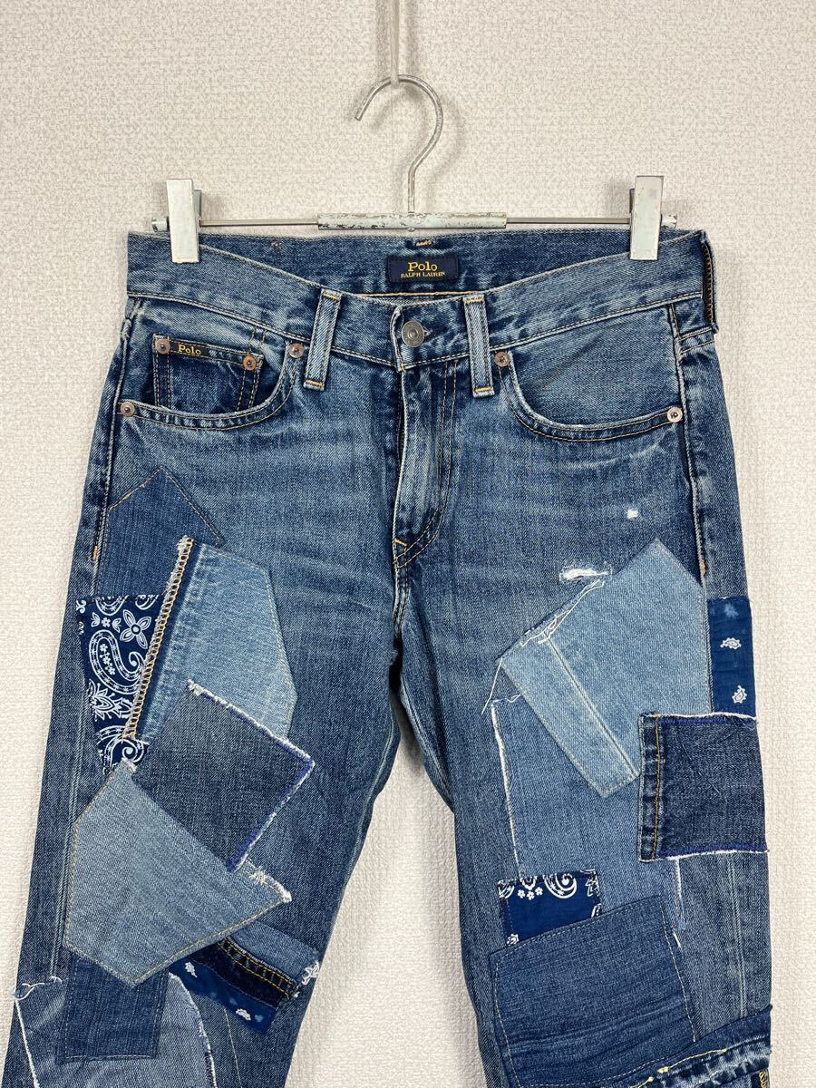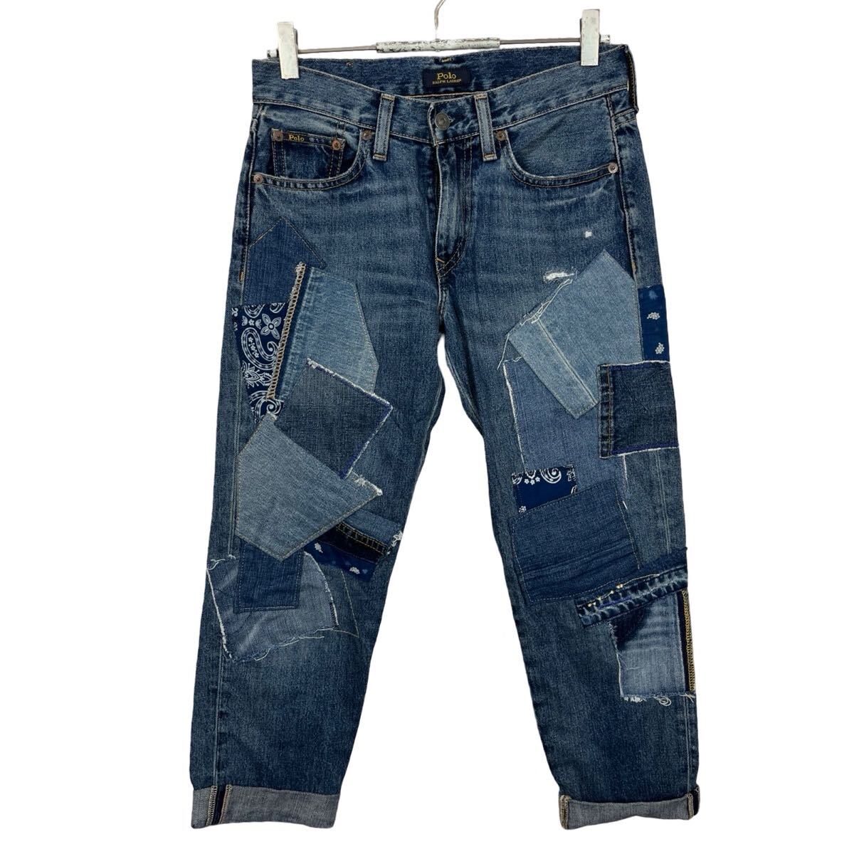フロントのパッチワークデザインがカントリーな雰囲気でおしゃれなデニムパンツです!