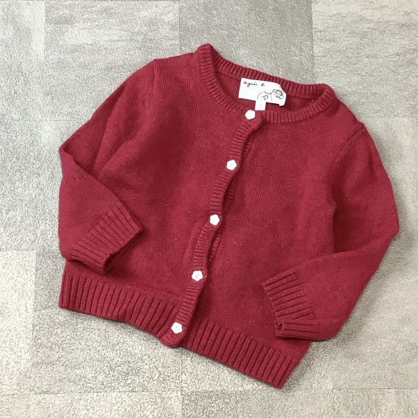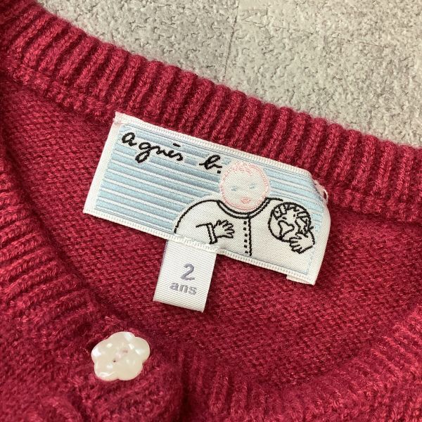 美品 agnes.b アニエスべー ニットカーディガン キッズ 2ans セーター レッド系