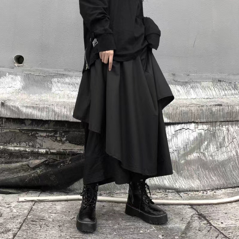 新入荷 秋 ブラック ワイドパンツ レディース ロング丈 ガウチョパンツ アシンメトリー キレイめ 変形 スカーチョ