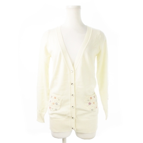 シンシアローリー CYNTHIA ROWLEY カーディガン ニット Vネック 長袖 ウール混 滑らか ビジュー レース フラワーモチーフ 2 白