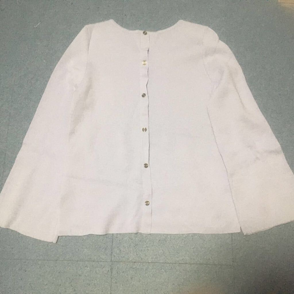 バックにボタンの装飾があるセーターです。色は写真2枚目が現物に近いです。
