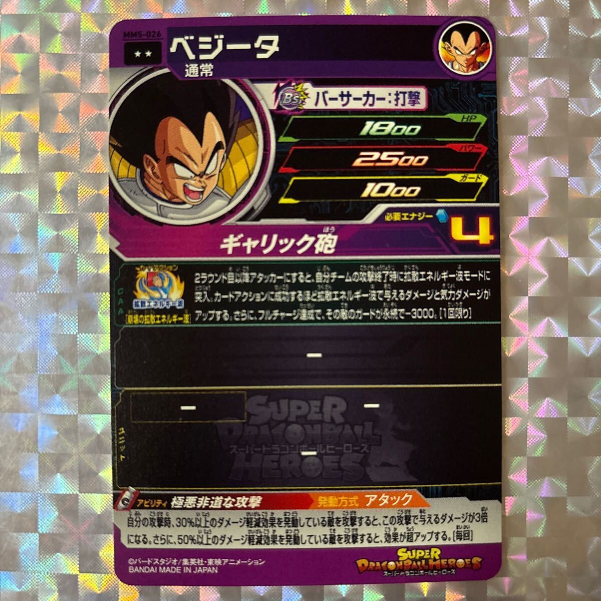 MM5弾レア/ ベジータ(通常)/ MM5-026/ 技:ギャリック砲/ スーパードラゴンボールヒーローズ/ レアリティ:☆☆/ BANDAI