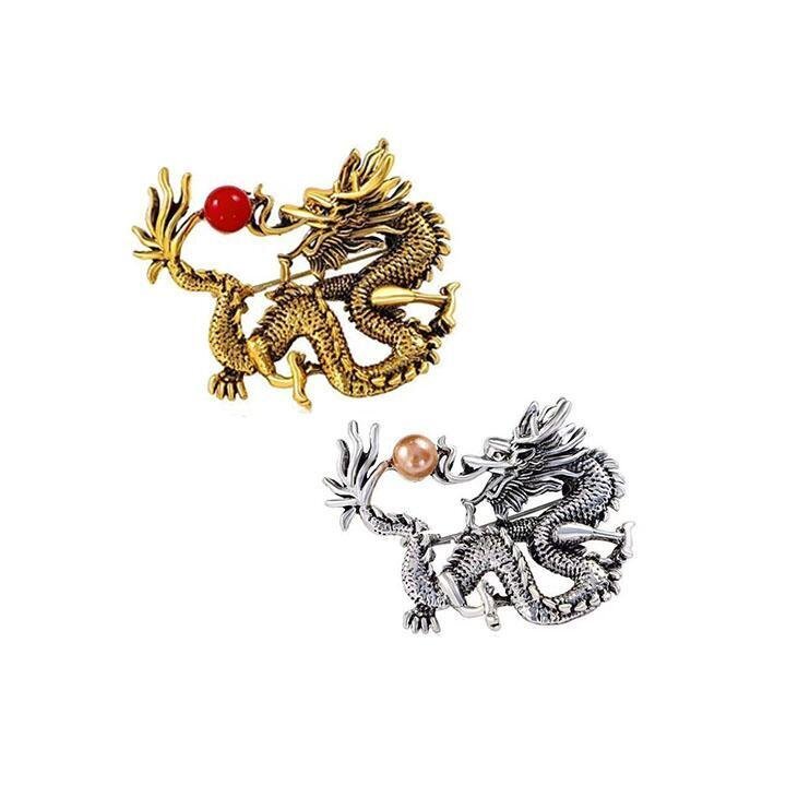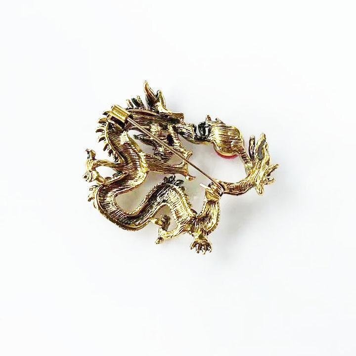 【動物】パール 十二支 龍 ドラゴン ブローチ/ゴールド