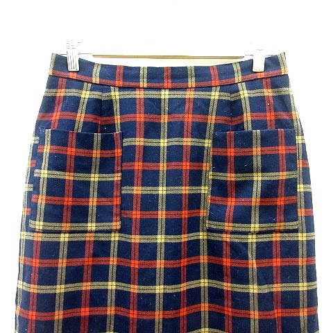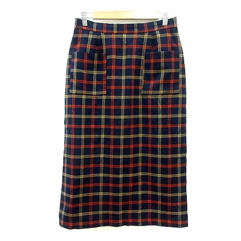 グローブ grove タイトスカート ミモレ ロング チェック L 紺 ネイビー /MN レディース