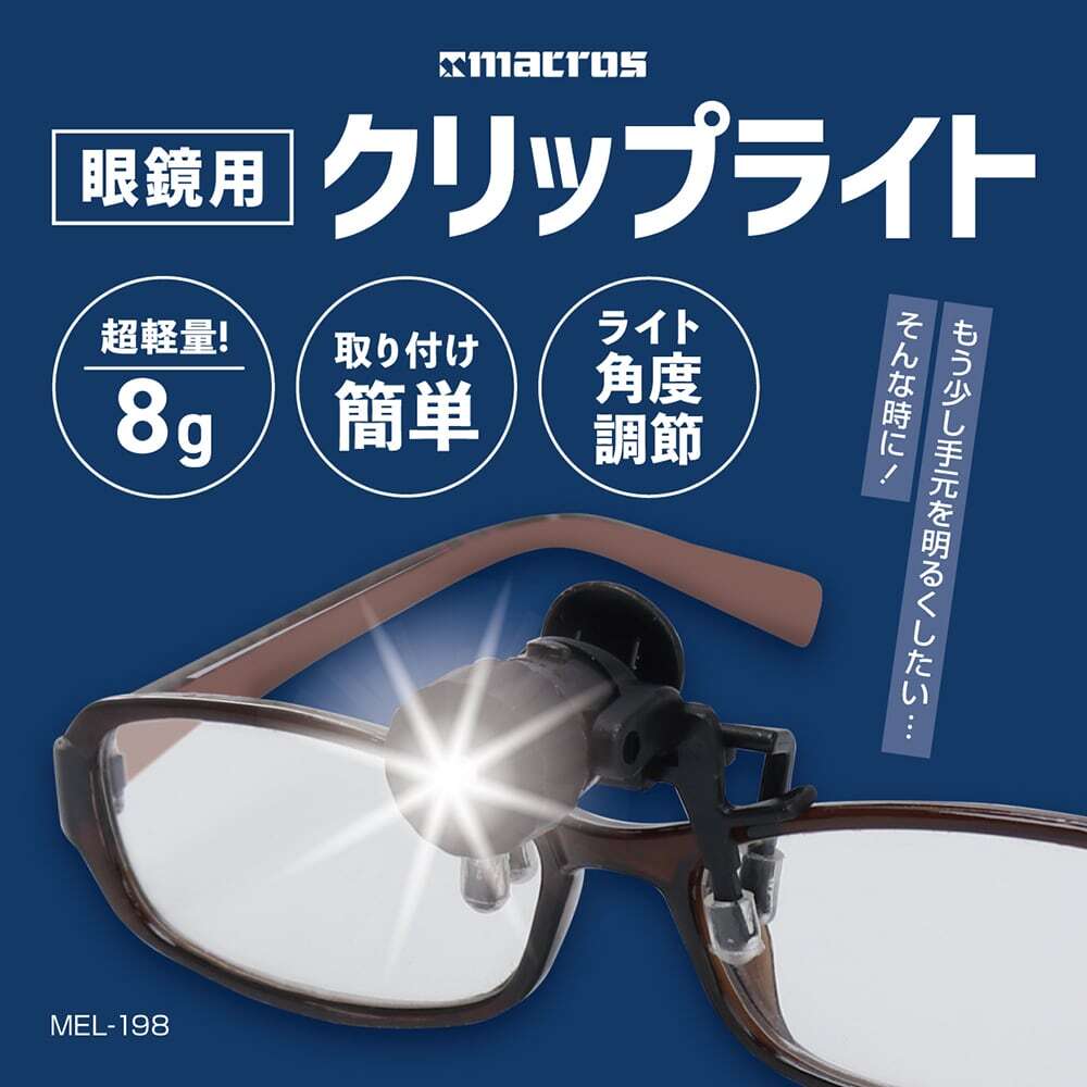 メガネ等につけて手元を明るく照らす超小型のクリップライト。装着簡単で角度調節も可能