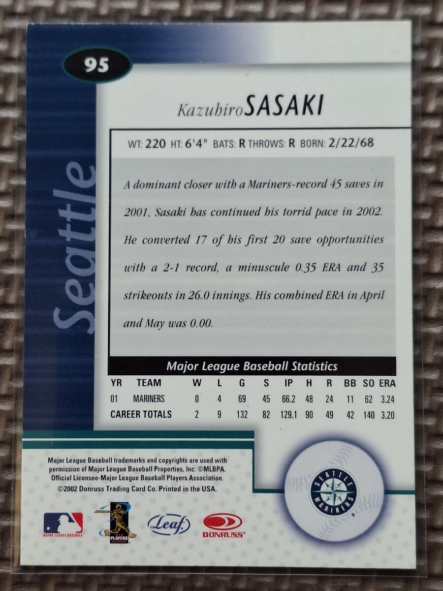 2002 Donruss Leaf Certified #95 KAZUHIRO SASAKI Seattle Mariners Yokohama Taiyo Whales