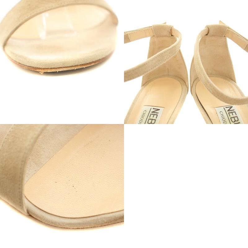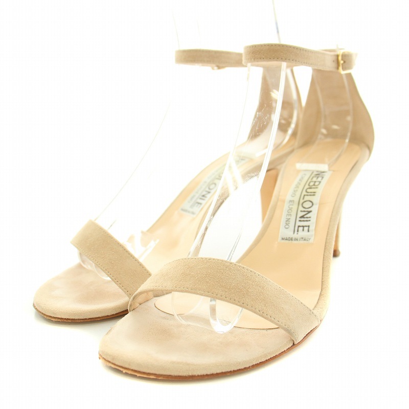 ネブローニ Nebuloni サンダル アンクルストラップ ハイヒール スエード 箱付き 37.5 24.0cm ベージュ 5805 /YT レディース