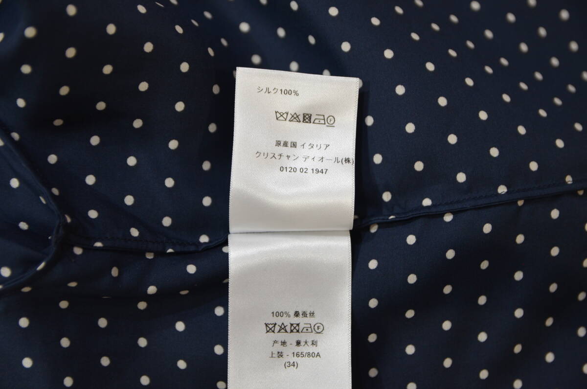 Christian Dior クリスチャンディオール BEE 刺繍 シルク ドット シャツ ブラウス 34 Y-30926B