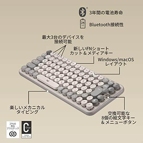 | ブランド:Logicool(ロジクール) カラー:グレージュ 説明 ロジクールからPOPなカラーとデザインが魅力のワイヤレスメカニカルキーボードが登場! タイプライターのようなレトロ感のあるカチカチとした打鍵音が魅力のこのキーボードはテンキーレスでコンパクトなデザイン。 スクープ型(薄いへこみ)のキーでやみつきになるタイピング体験が楽しめます。 本体にはすぐに絵文字が送れるカスタマイズ可能な4個の絵文字ショートカットキーと絵文字メニューキー付き(※1)。 自分好みに付け替えられるこの絵文字キーは無料アプリケーション「Logi Options+」の最新版をPCにダウンロードし、アプリケーション内で操作をすることによって作業をカスタマイズすることも可能です。 キー操作のみでデバイス・OS間をデータ移動できるロジクール独自のFLOW機能と最大3台の接続デバイスをボタン1つで切り替えられるEasy-switchにも対応。 作業の生産性をアップします。 接続はBluetoothとロジクール独自の新通信技術「Logi Bolt」(※2)に対応。 「Logi Bolt」はグローバルスタンダードのセキュア接続専用モードに基づいた設計の通信技術で、より安全でクローズドな接続を実現しています。 単四形電池2本で最大36カ月の長電池寿命。保証期間2年間。 5,000万回のクリックテストをクリアし、耐久性も抜群。パッケージにFSC認証を取得した森林に由来する材料を採用した環境にもやさしいキーボードです。 対応OS:[Bluetooth] Windows 10, 11 以降、macOS 10.15 以降、iPad OS 14以降、iOS 14以降、Chrome OS、Android OS 8以降/[Logi Bolt] Windows 10, 11 以降、macOS 10.14以降、Chrome OS (※1):絵文字機能の利用とLogi Options+での絵文字機能のカスタマイズはwindowsとmacのみに対応しています。 (※2):「Logi Bolt」USBは本製品(K730)ではパッケージに同梱されています。 POPなカラーとデザインが魅力のワイヤレスメカニカルキーボード タイプライターのようなレトロ感のあるカチカチとした打鍵音/スクープ型(薄いへこみ)のキーでやみつきになるタイピング体験 付替作業も楽しい/すぐに絵文字が送れるカスタマイズ可能な4個の絵文字ショートカットキーと絵文字メニューキー ※絵文字キーはwindowsとmacのみ対応 接続:Bluetoothとロジクール独自の新通信技術「Logi Bolt」USBに対応/「Logi Bolt」USBはパッケージに同梱されています/2年間の長期保証 対応OS:[Bluetooth] Windows 10, 11 以降、macOS 10.15 以降、iPad OS 14以降、iOS 14以降、Chrome OS、Android OS 8以降/[Logi Bolt] Windows 10, 11 以降、macOS 10.14以降、Chrome OS | |||