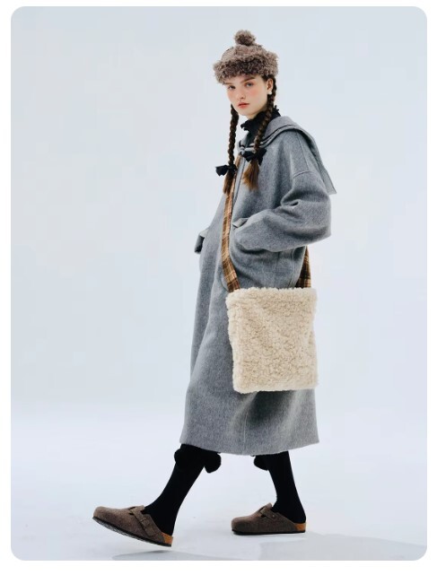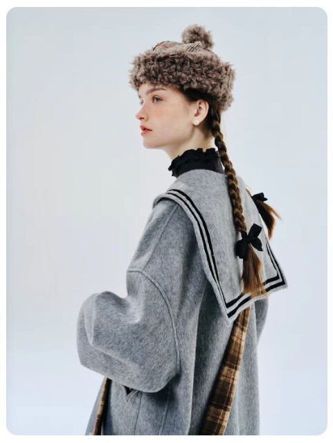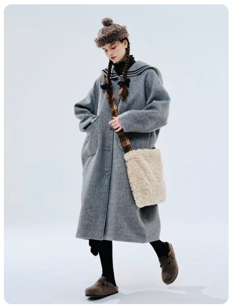 女性用秋冬用服、ウールコート、ロングコート、グレー