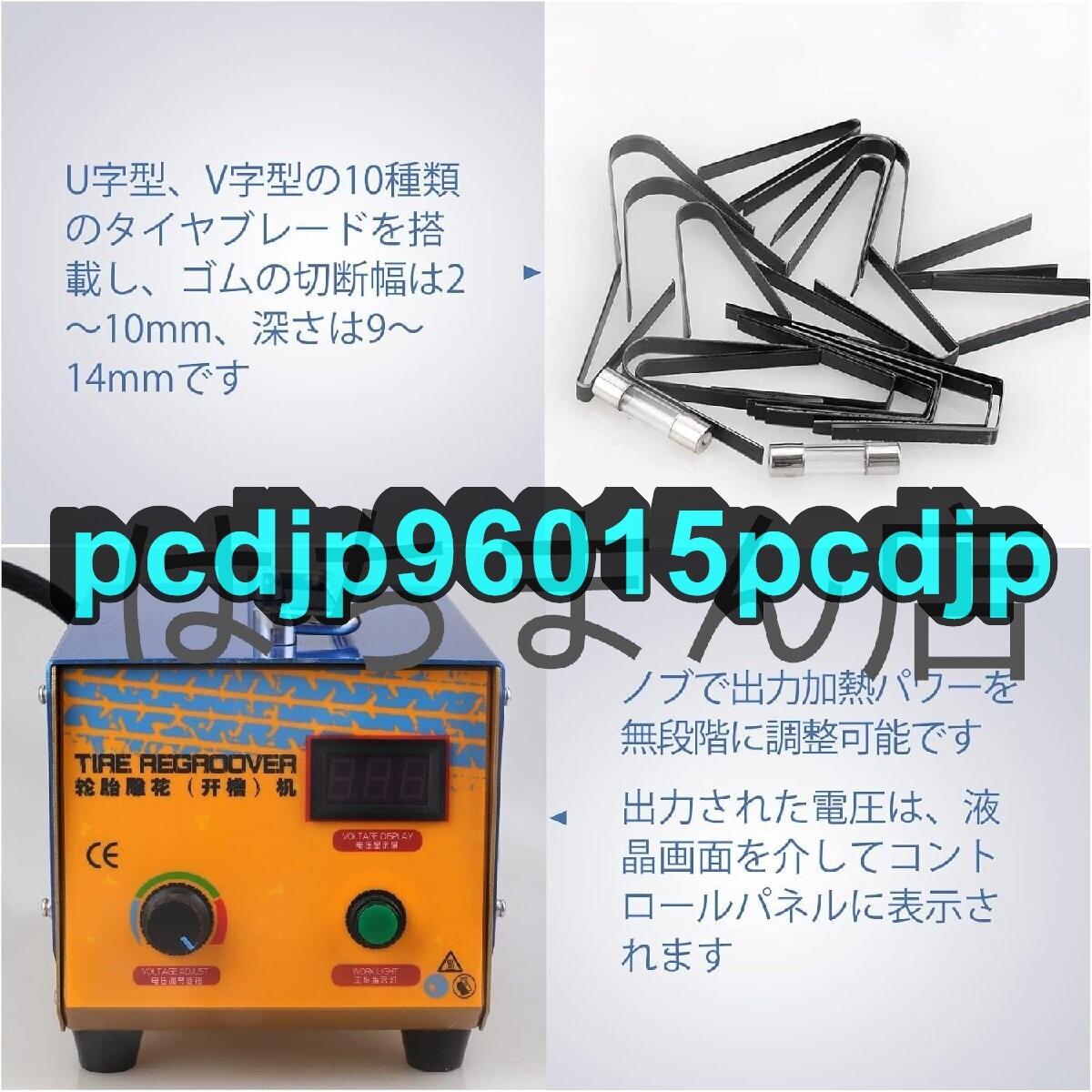 状態:新品未使用 【ハンドヘルドタイヤグルーバー】操作が簡単で、持ち運びにも便利です。あらゆる種類のタイヤやゴムシートの溝入れに使用され、使いやすく、コントロールも簡単です。 【コントロールしやすい】加熱パワーはノブで無段階に調整でき、出力電圧の値はコントロールパネルに表示できます。 異なるサイズのタイヤ溝を、適切なパワーでカットすることが選択できます 【マルチファンクション】U、Vなど10種類のタイヤブレードを搭載し、幅2mmから10mm、深さ9mmから14mmのゴムを切断することが可能です 【高性能】1000Wのハイパワーで、タイヤの表面を素早く、スムーズに、そして簡単に滑るように設計されています。正確で一貫した切断深さを確保し、ゴム切断を簡単かつ自由にします 【幅広い用途】タイヤ用溝入れ工具は、レース用タイヤ、トラック用タイヤ、オートバイ用タイヤ、カート用タイヤ、ATV用タイヤ、工業用タイヤなど、幅広く使用されています。 ★商品写真はできる限り実物の色に近づけるよう努めておりますがご使用のPCモニター設定や部屋の照明により多少、色の変化が感じられる場合がございます