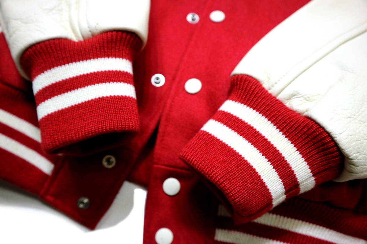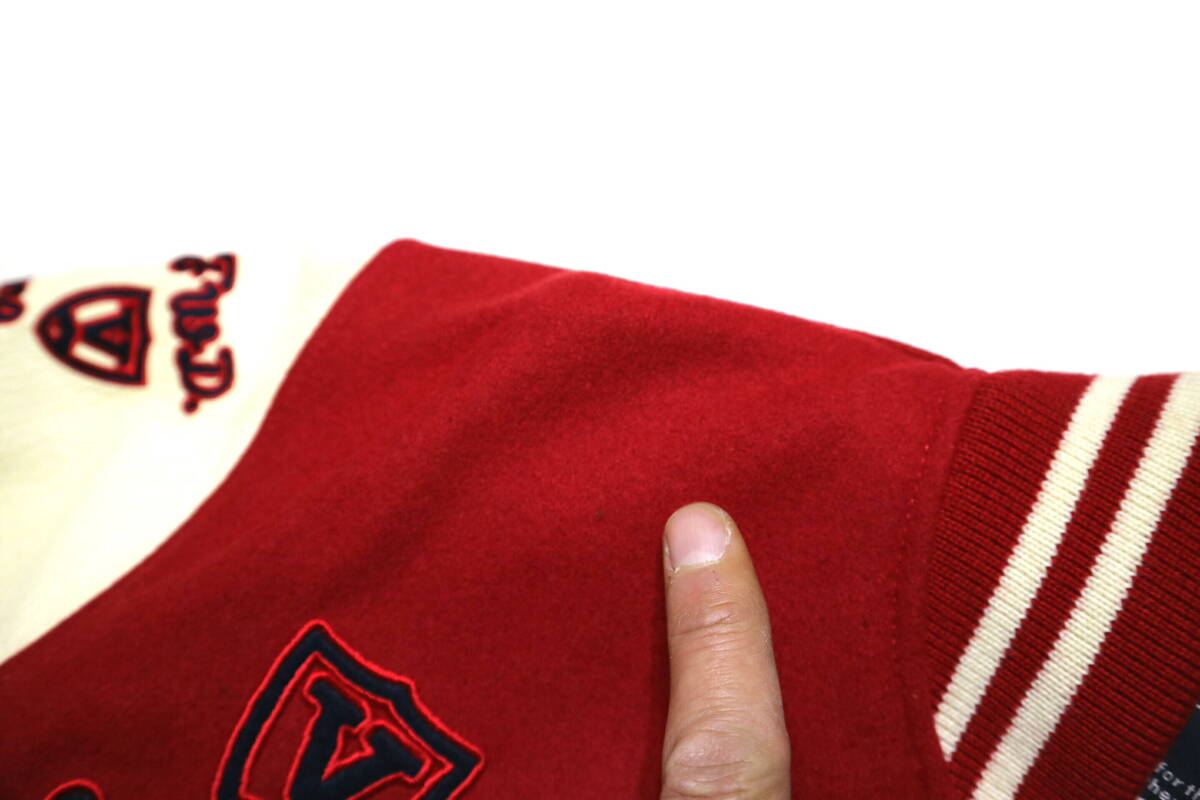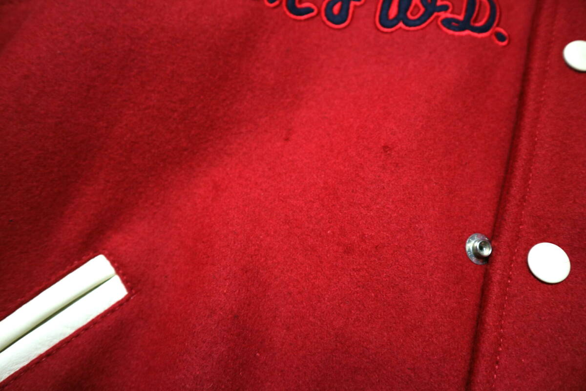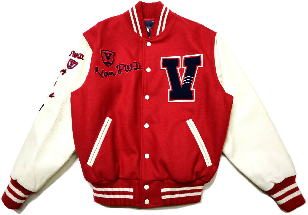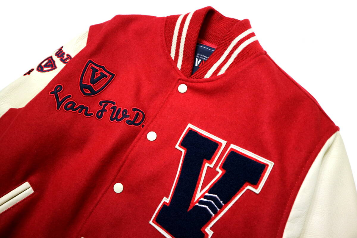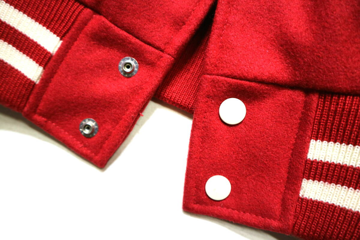 ・密でしっかりとしたメルトン生地と質の良い袖牛革の組み合わせ、いわゆるセミデコのとても雰囲気の良い作りです。VAN JACの袖革スタジャンです。