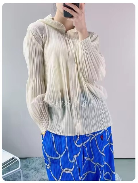 女性用、Miyake-ジッパーフード付きジャケット、女性用プリーツジャケット、韓国のファッション、カラー:ホワイト