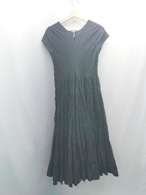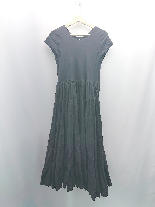 ◇ Green Label Relaxing 裏地あり 透け感なし ラウンドネック ロング ワンピース サイズ36 ブラック レディース E