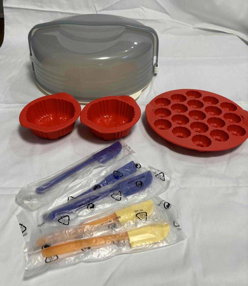 TUPPERWAREタッパーウエア★ハンドル付きホールケーキ用★シリコンベーキング 赤 ケーキ パン★スパチュラ ヘラ クラウンジュエル