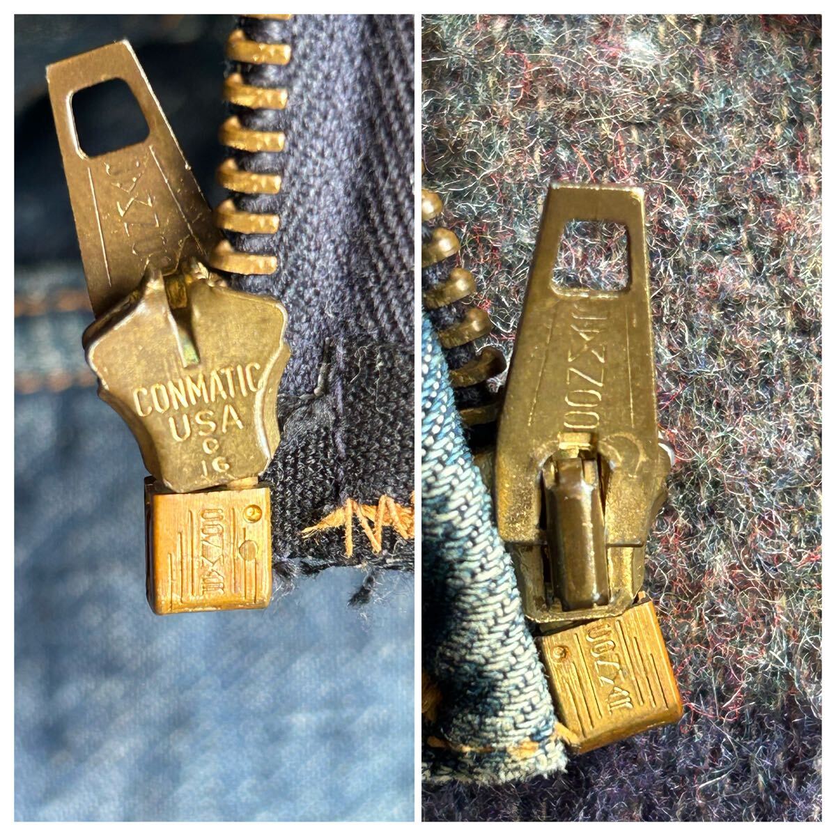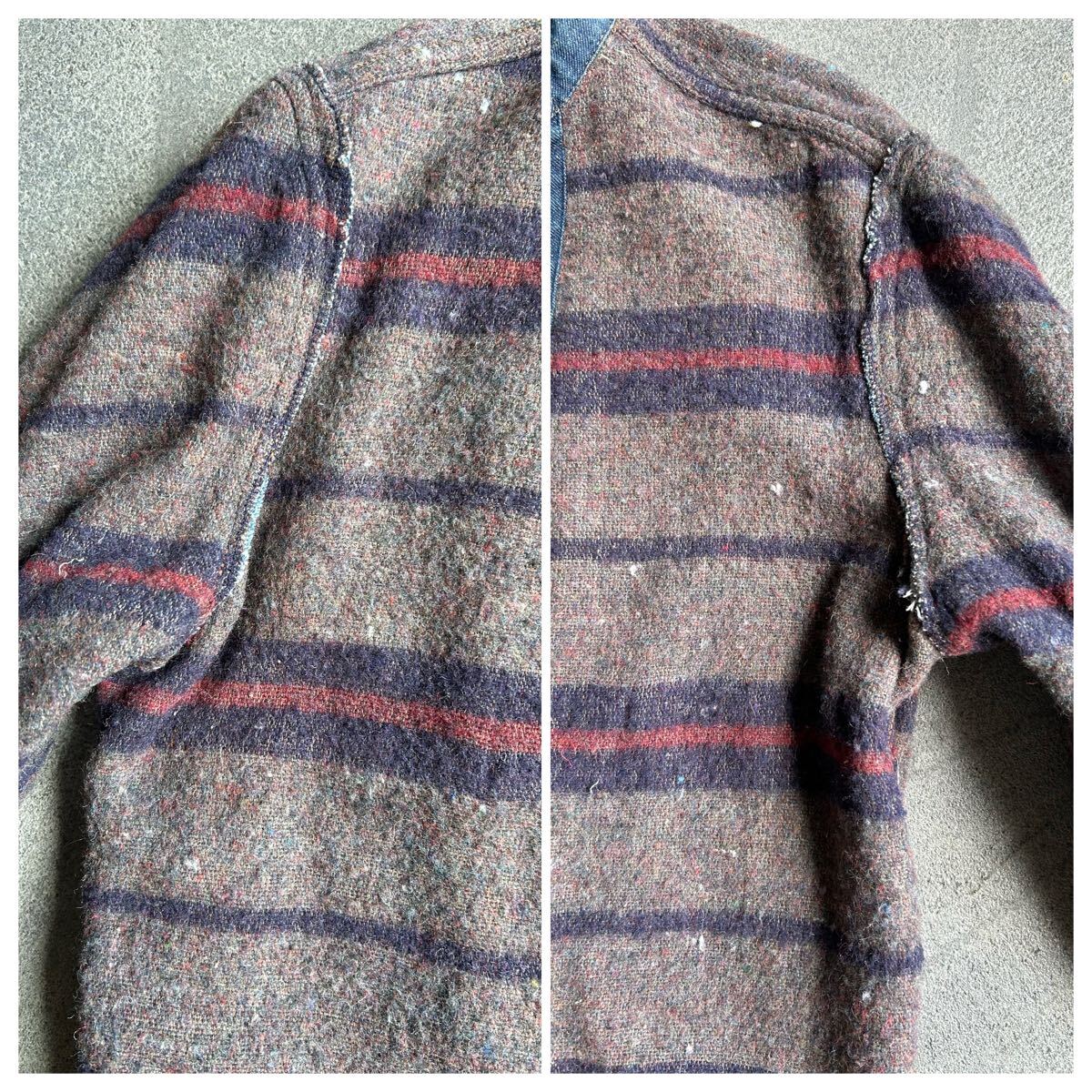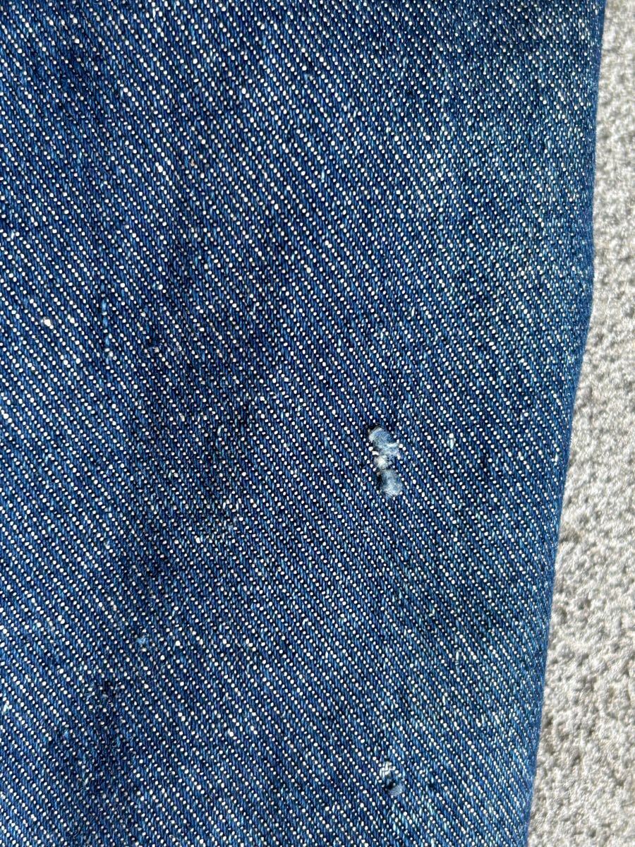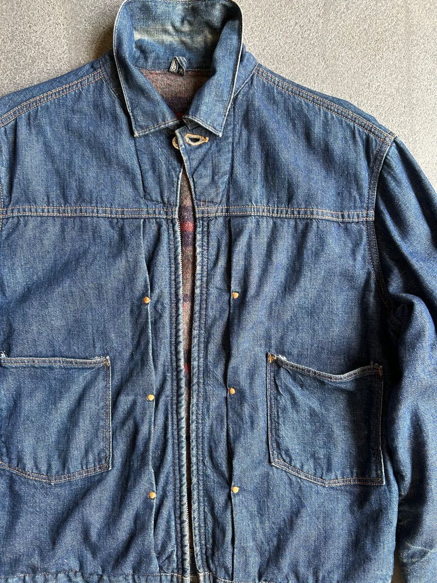 全体的に糸ホツレ、薄いシミ左腕小穴1箇所右腕デニムの色むらなどありますが、変な縮みが無く年代から考えてもとても状態が良いです。